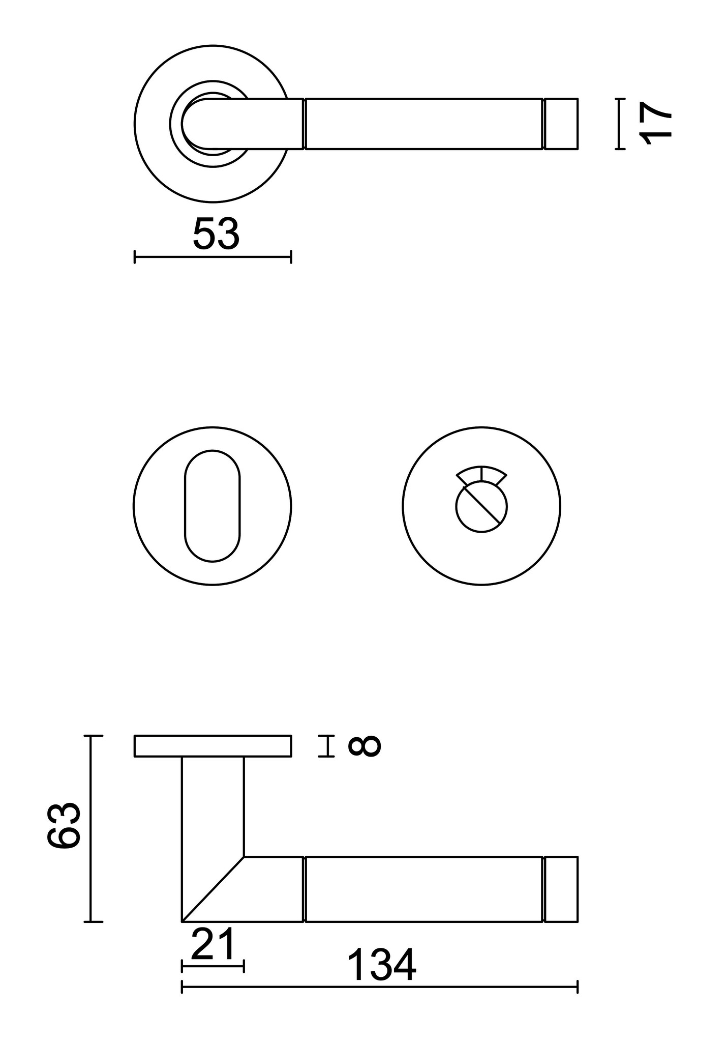Diese Türdrücker sind in vier Ausführungen erhältlich: ohne Rosetten, mit Rosetten, mit Zylinderrosetten und mit WC-Beschlag. Treffen Sie Ihre Auswahl im Scrollmenü oben rechts .