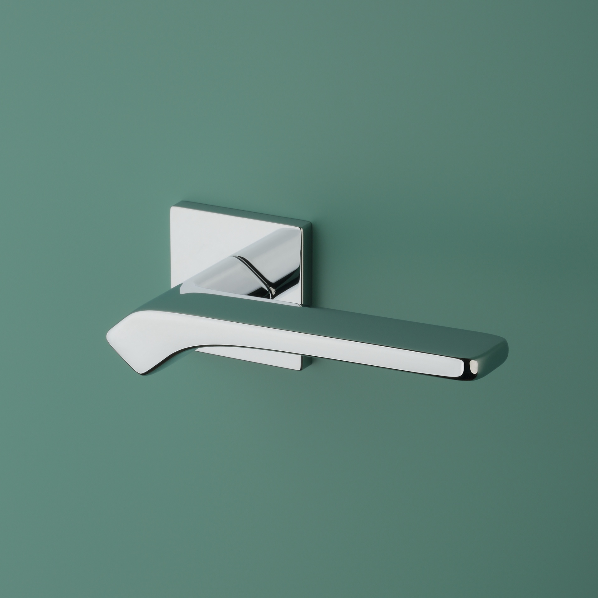 Diese chrompolierten Designer-Türgriffe sind eine Augenweide. Der Griff ist formschön und liegt angenehm in der Hand.