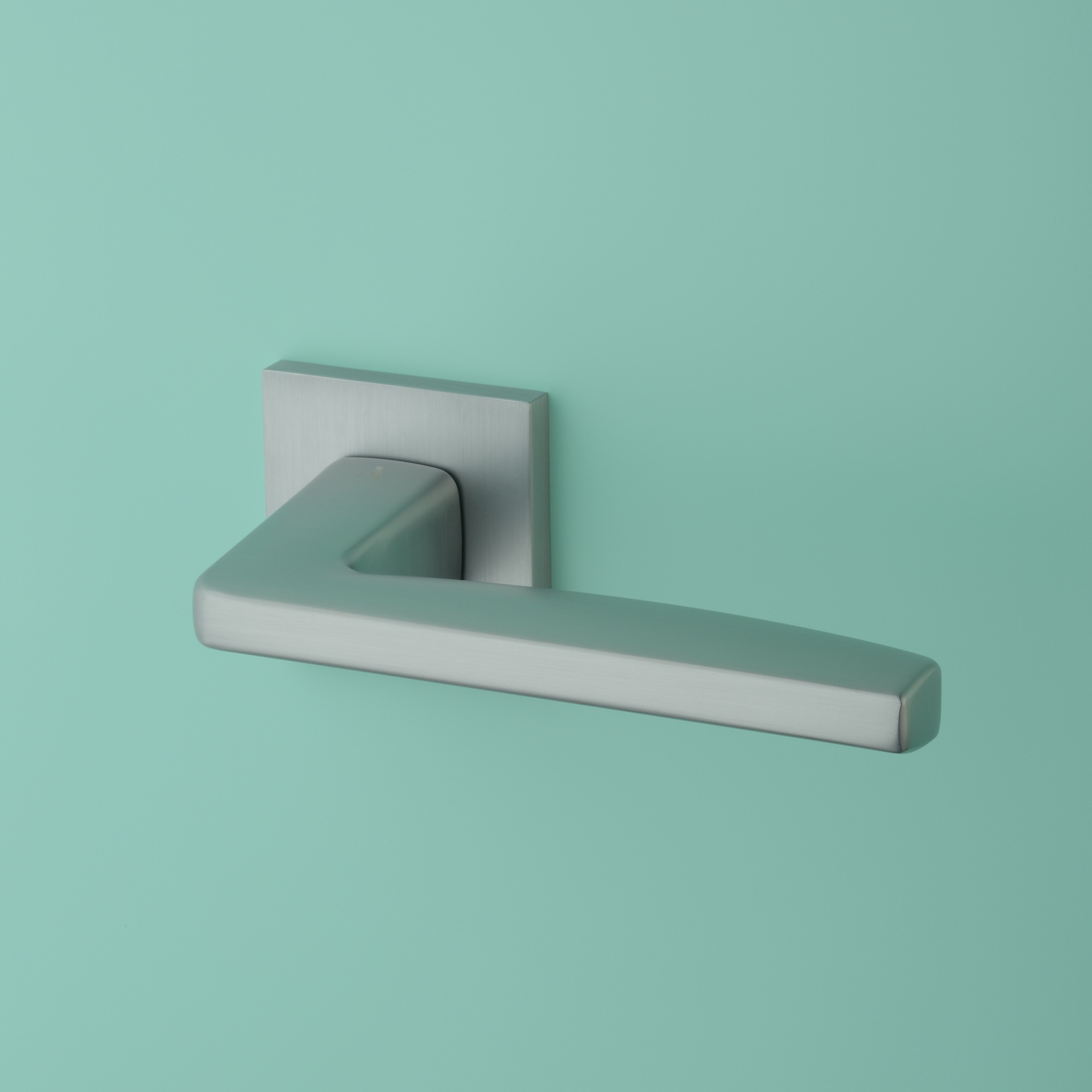 Dieses Modell aus satiniertem Chrom wird Sie begeistern. Mit seinen 53 x 53 cm großen quadratischen Rosetten und einer Stärke von nur 7 mm erhalten Sie einen klassischen Türgriff mit modernem Charakter, der zu vielen Inneneinrichtungen passt.