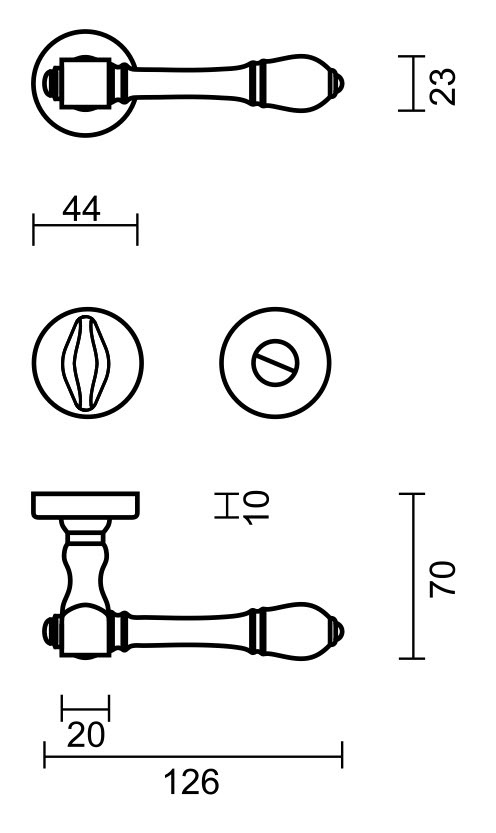 Diese Türgriffe haben ein klassisches Aussehen und stehen auf einer runden Rosette von 44 mm.