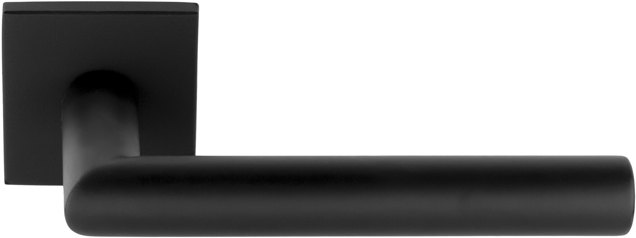 JONAH gefederte Türgriffe mit mattschwarzer Oberfläche. Modernes Design auf einer quadratischen Rosette zu einem wettbewerbsfähigen Preis