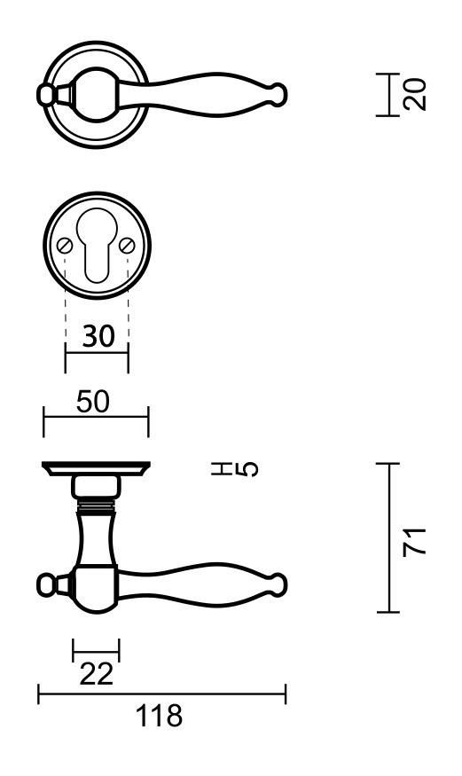 Diese Türgriffe sind in 4 Varianten erhältlich: ohne Schlüsselschilder, mit Schlüsselschildern, mit Zylinderschildern und mit WC-Beschlägen. Treffen Sie Ihre Wahl im Scrollmenü oben rechts .