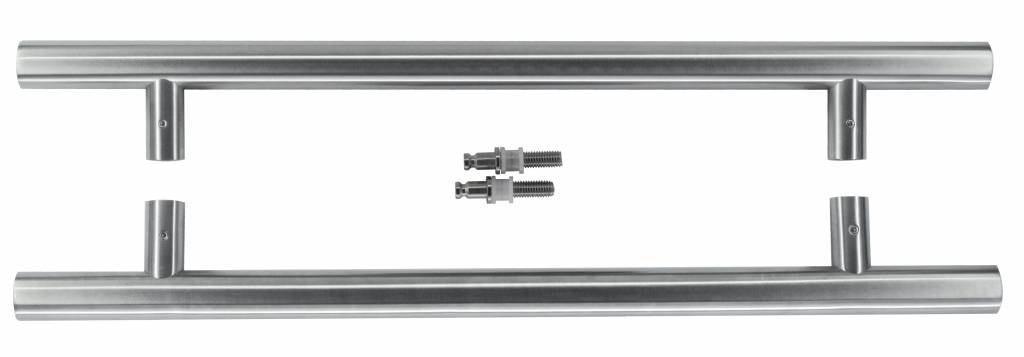 Diese T-förmigen Türgriffe aus Edelstahl mit einer Gesamtlänge von 500 mm werden als Paar für eine Glastür geliefert.