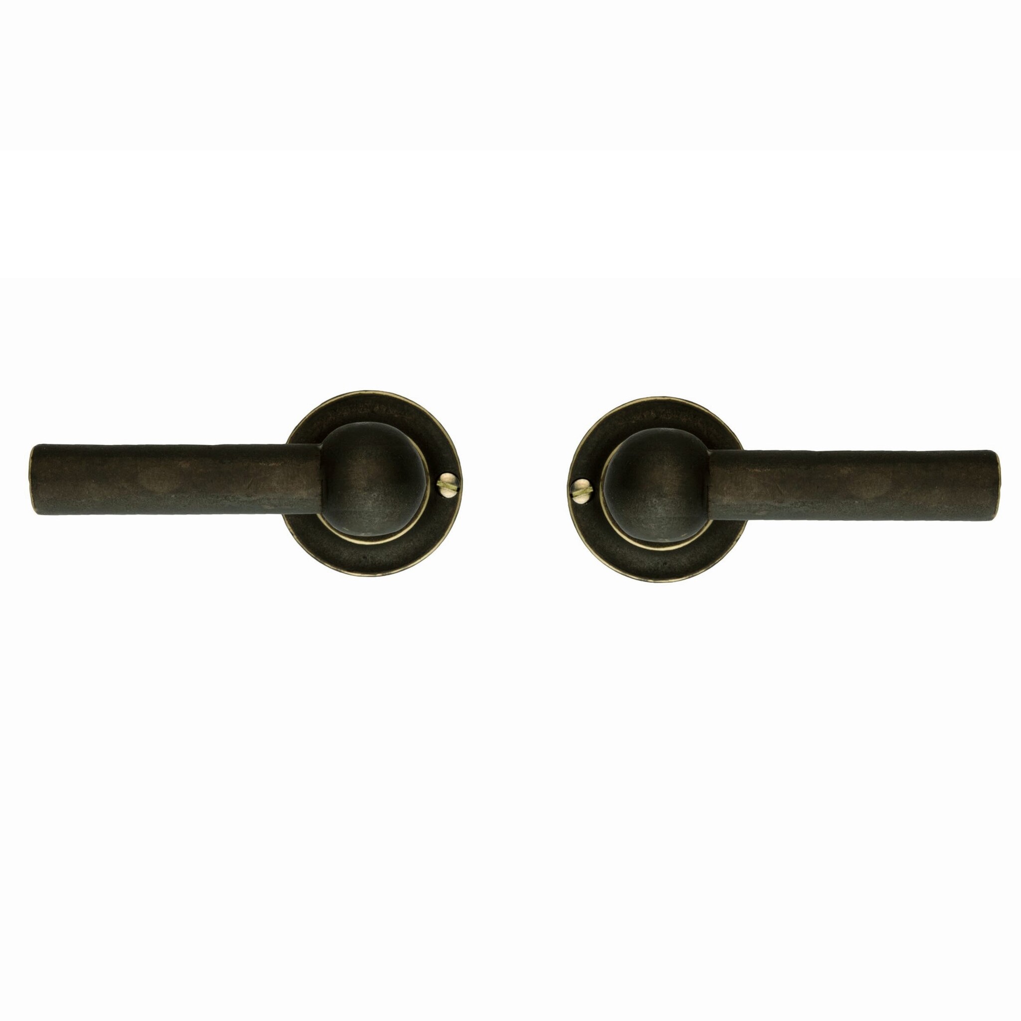 Diese Türgriffe sind in einer L+L-Kombination erhältlich und aus Altmessing gefertigt.