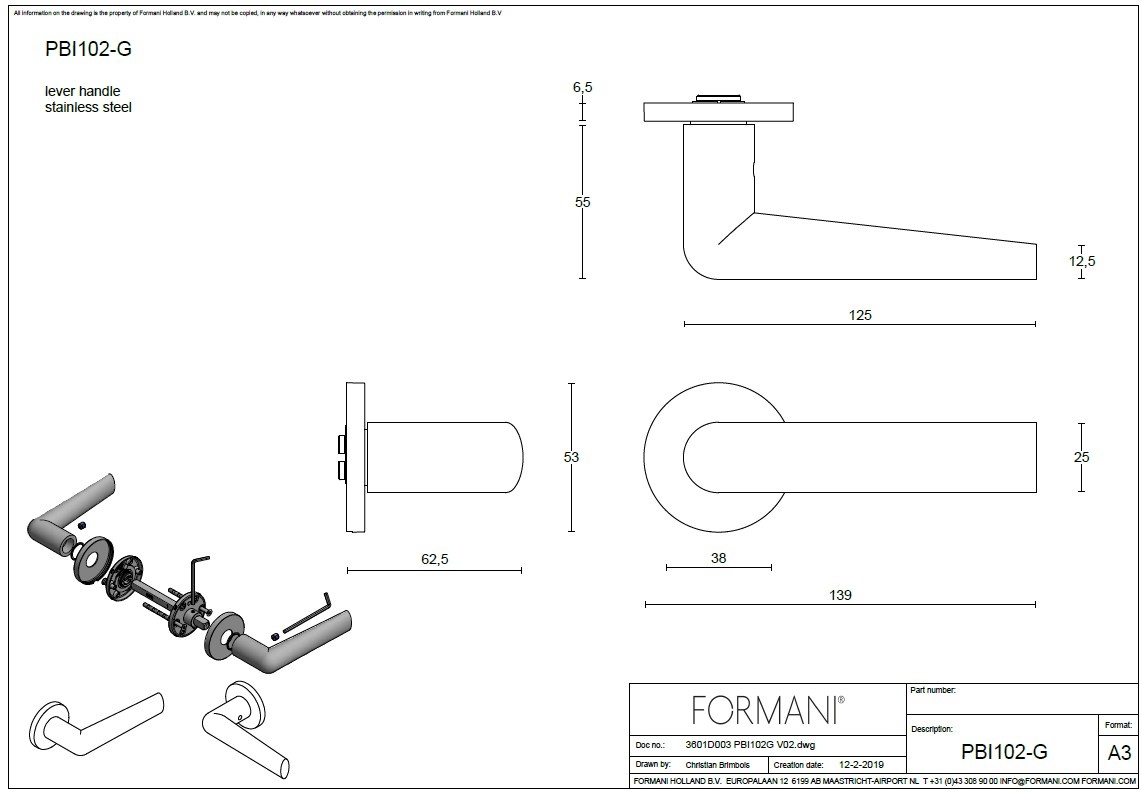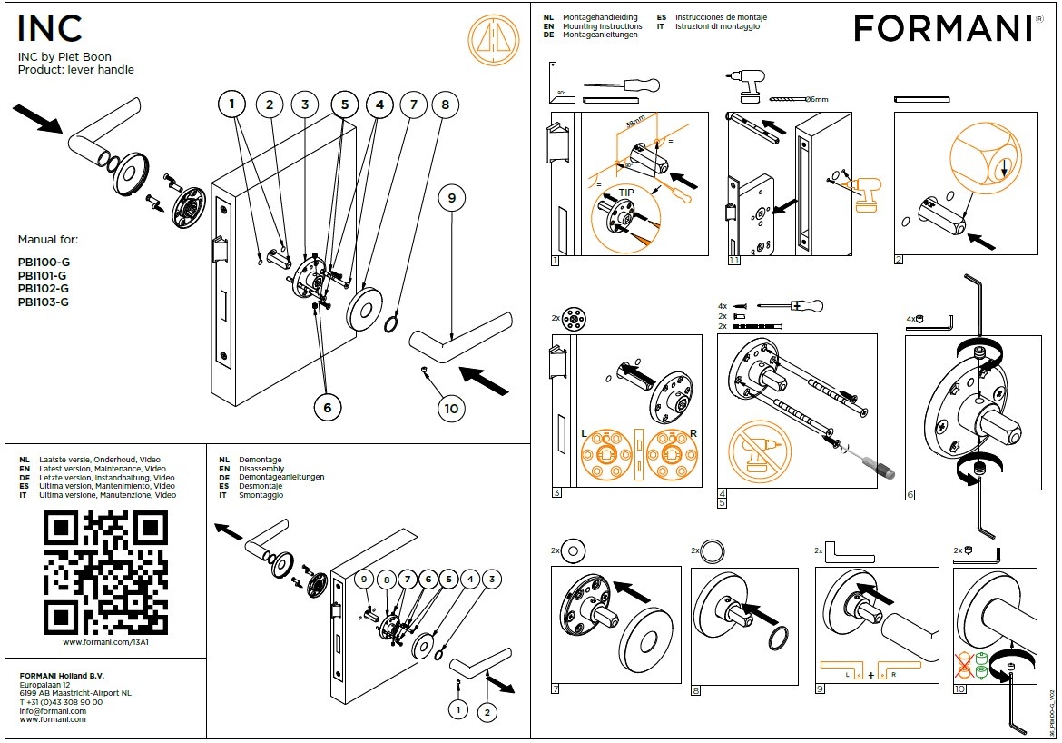 Die Türdrücker INC PBI100-G werden paarweise ohne Rosetten, inklusive Befestigungsmaterial und Vierkantstift geliefert. Sie sind für Innentüren mit einer Stärke von 38–45 mm geeignet.