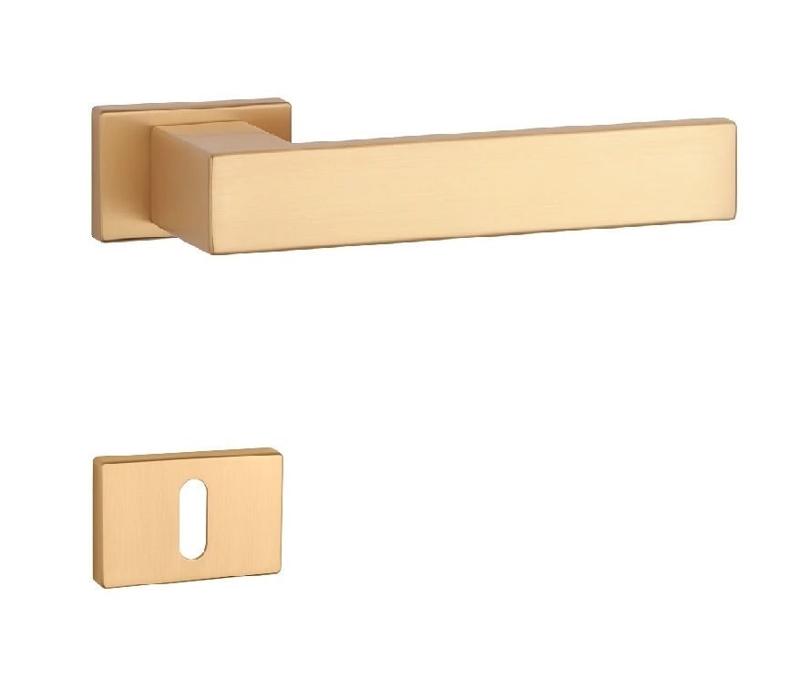 Lassen Sie sich von diesem wunderschönen, mattgoldpolierten Türgriff mit seinen rechteckigen Rosetten verführen. Der Pina-Türgriff ist die perfekte Wahl, wenn Sie etwas Besonderes suchen. Sein Stil passt besonders gut in moderne und minimalistische Wohnräume.