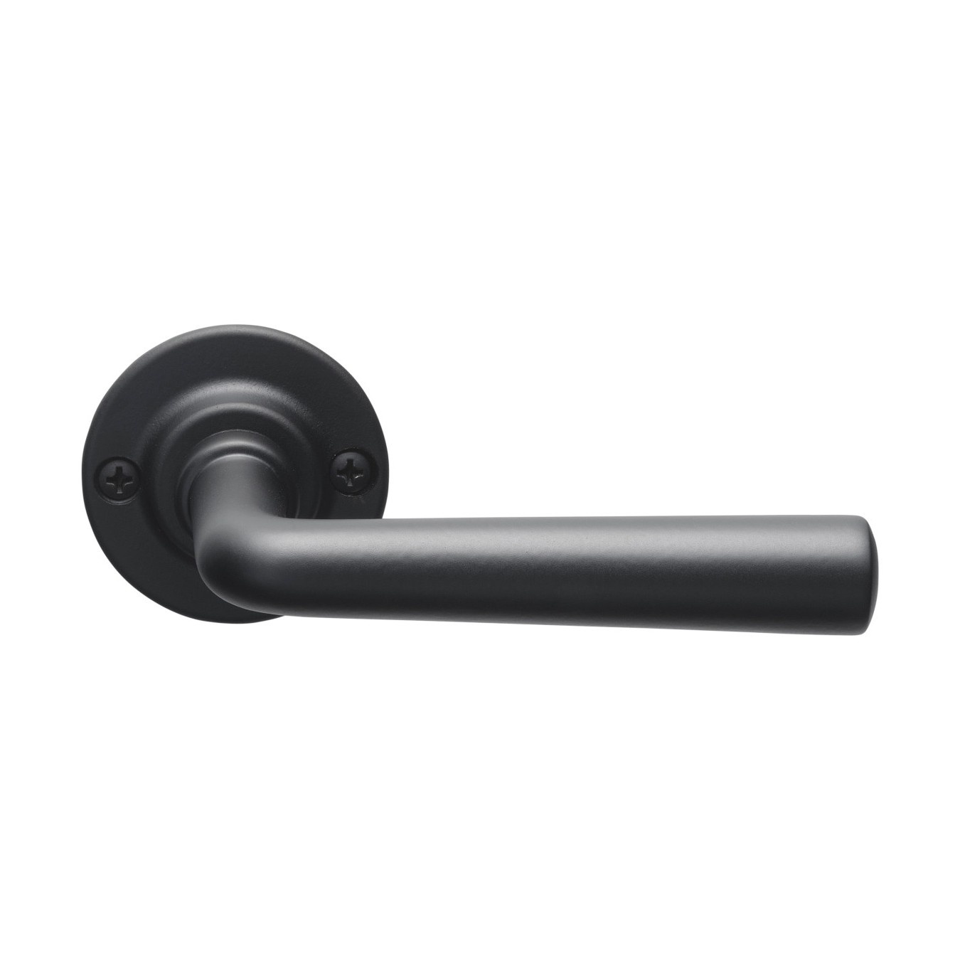Der Türgriff ist aus massivem Messing gefertigt und in mattem Schwarz gehalten. Das sorgt für eine luxuriöse Optik und einen angenehmen Griff. Dieser zeitlose Türgriff passt perfekt in klassische und moderne Innenräume. Die Türgriffe sind auf extradünnen Rosetten von nur 2 mm Dicke montiert.