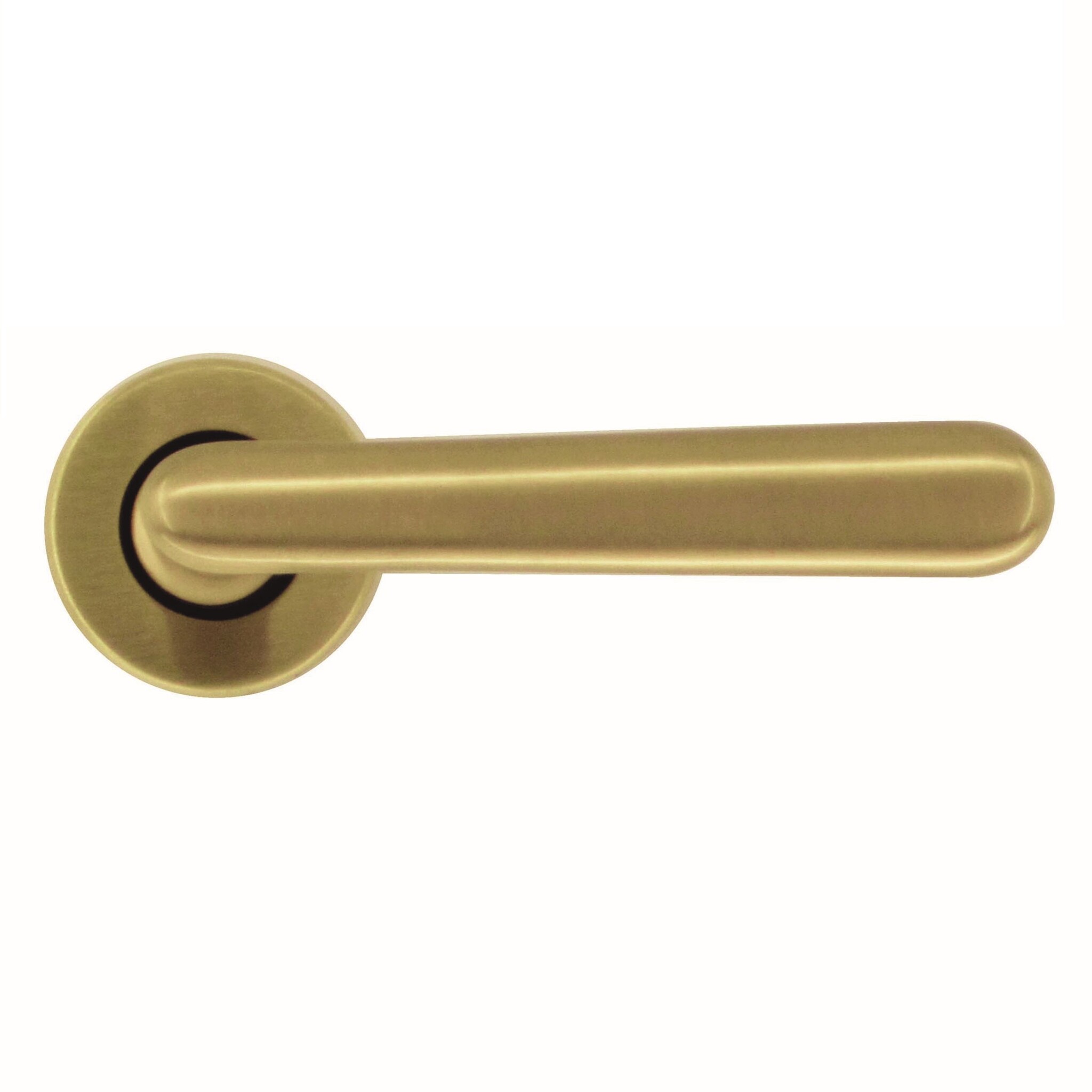 Klassischer Türgriff Vera in Mattgold auf runden Rosetten in 4 Varianten erhältlich