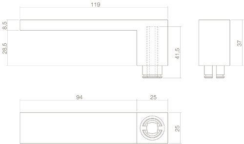 Dieser Türgriff ist 1-Loch-Teil und kann mit den schwarzen Sicherheitsschilden von Intersteel kombiniert werden.