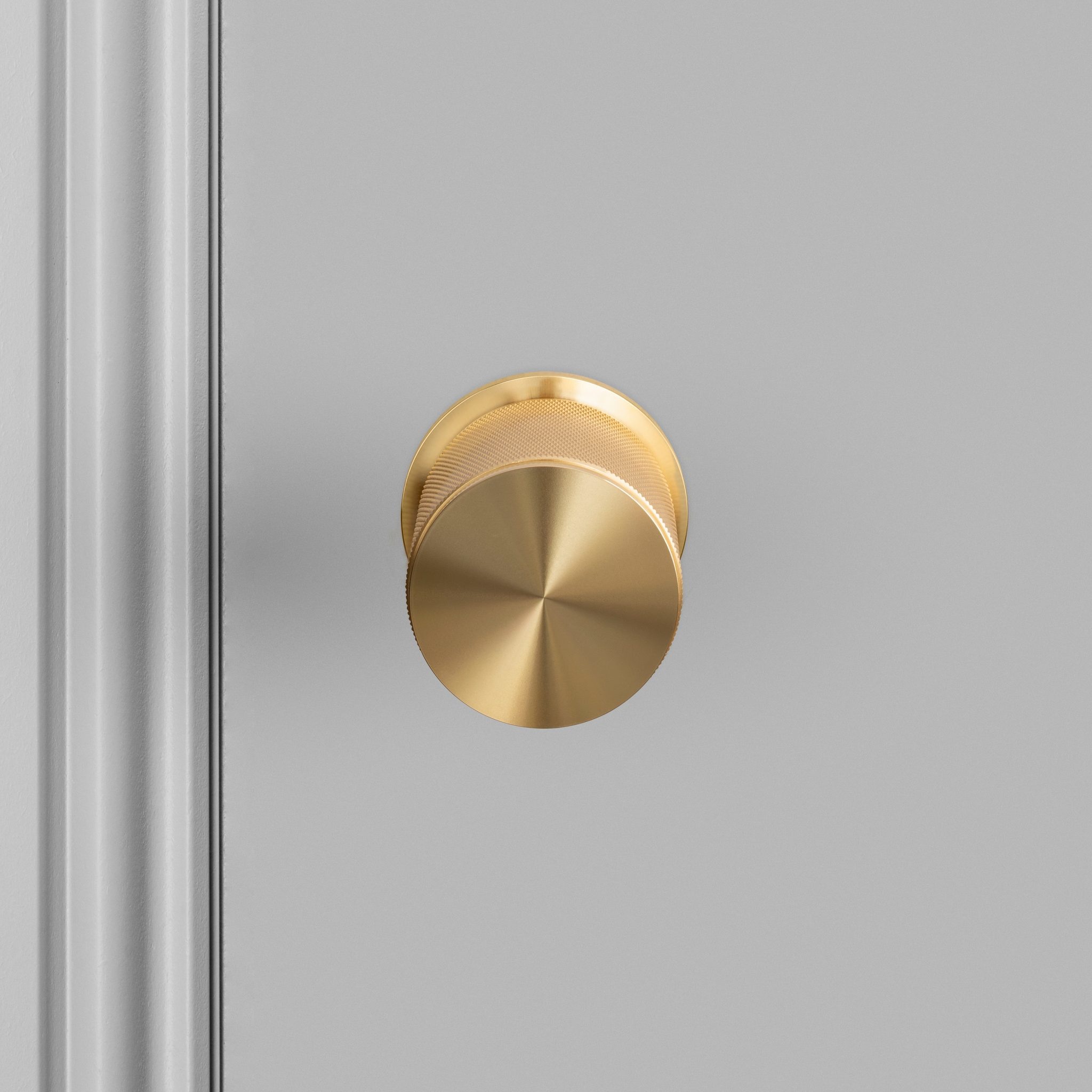 Paar drehbare Türknöpfe aus massivem Messing mit dem charakteristischen Diamantschliffmotiv von Buster and Punch