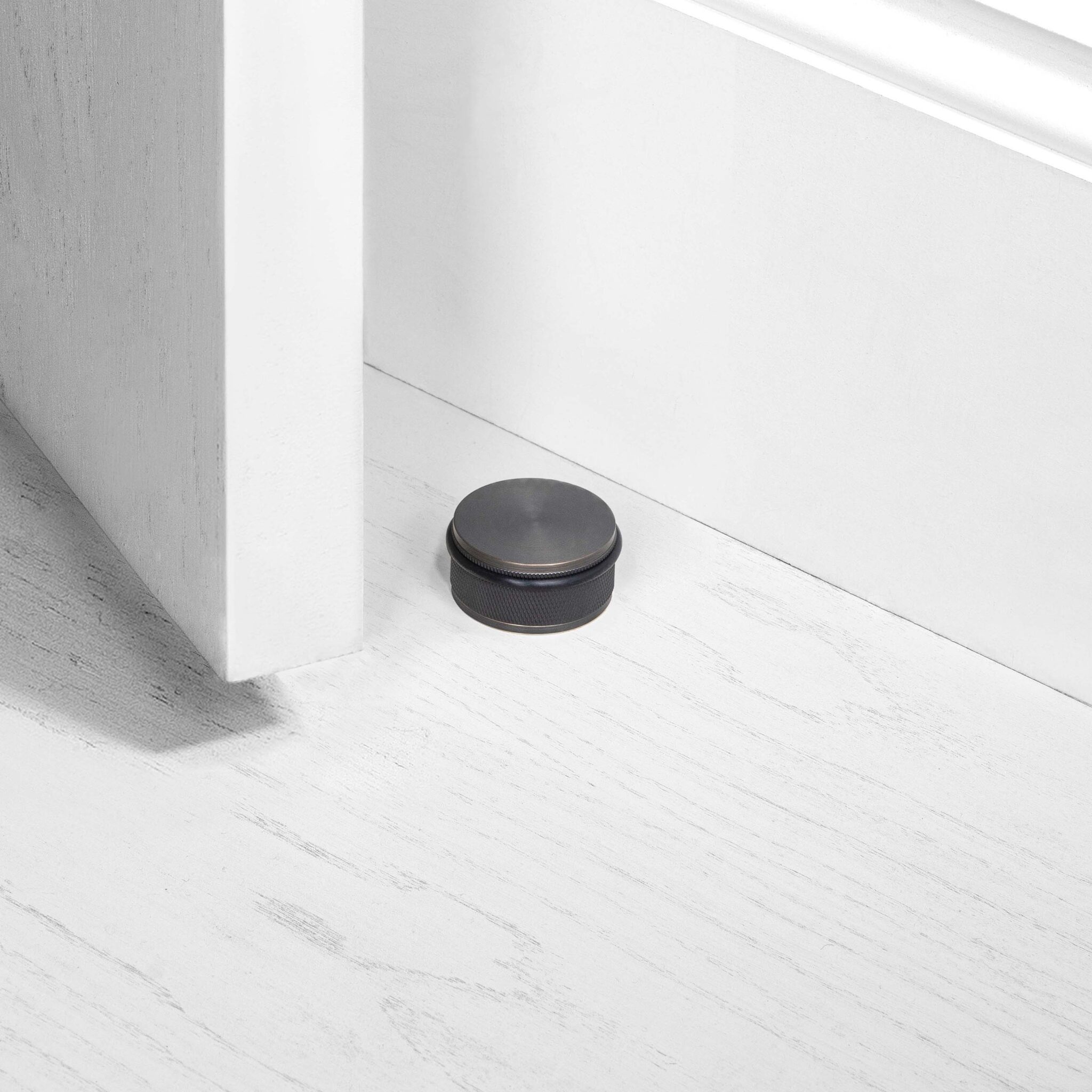 Dieser Türstopper von Buster&Punch ist für die Bodenmontage und besteht aus massiver Rauchbronze.