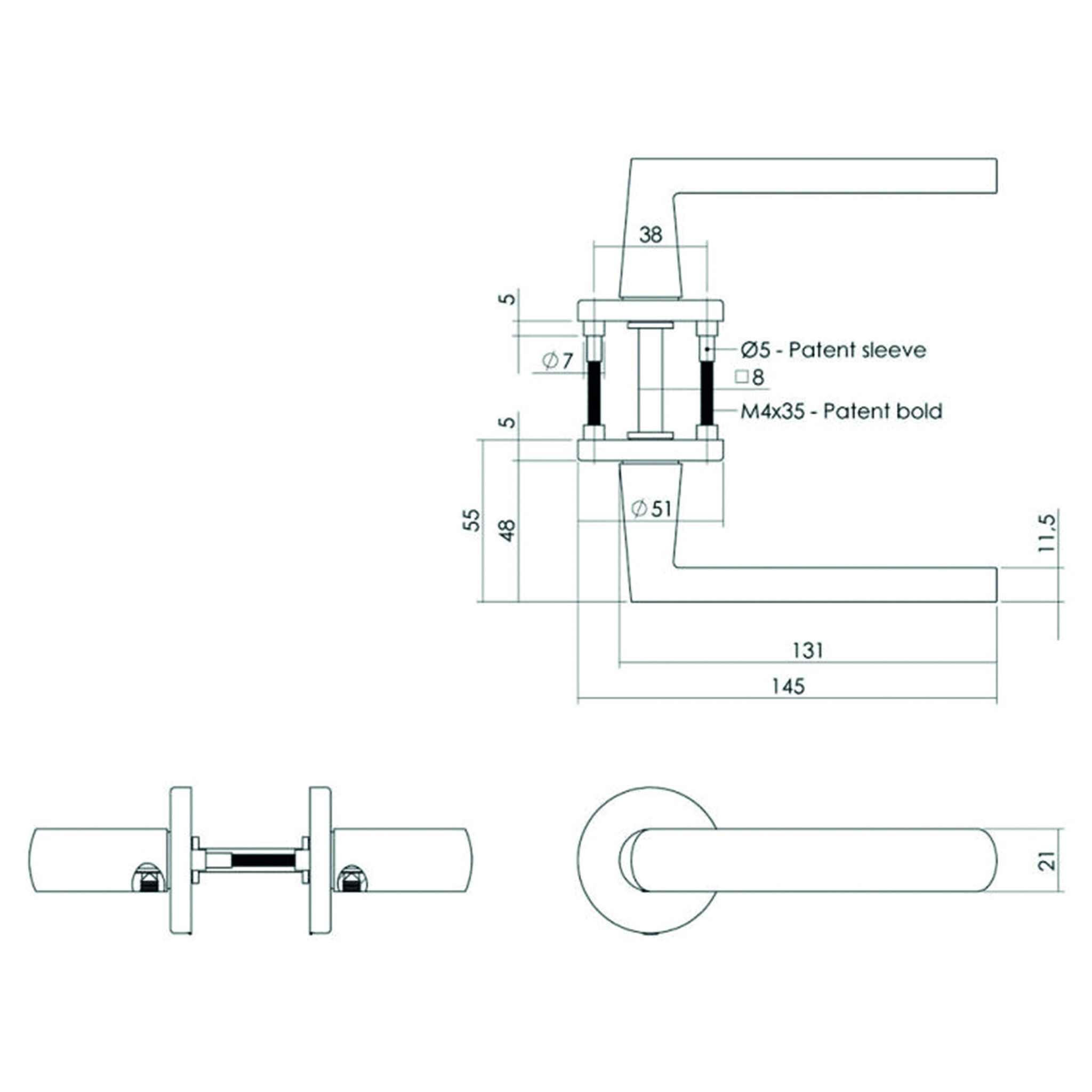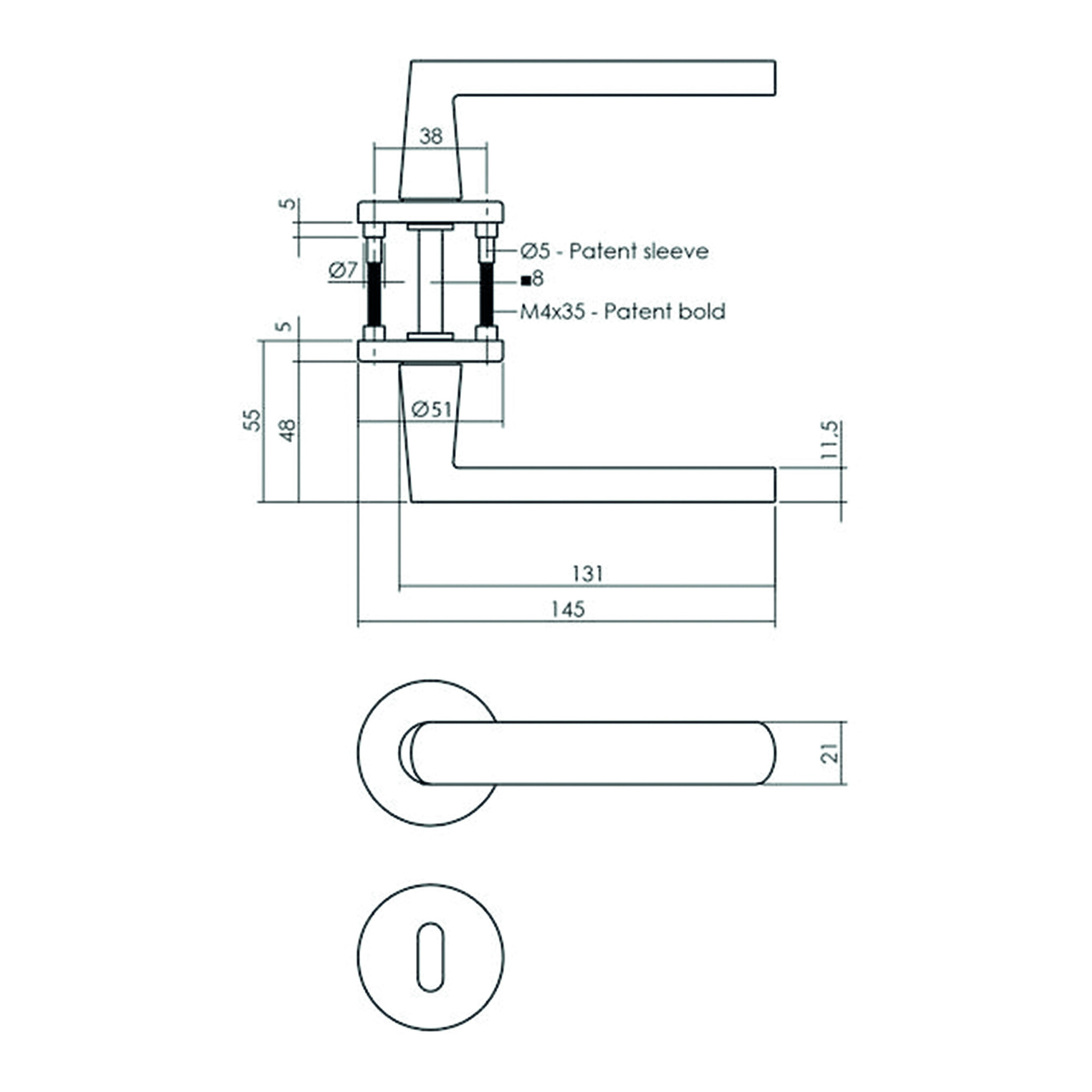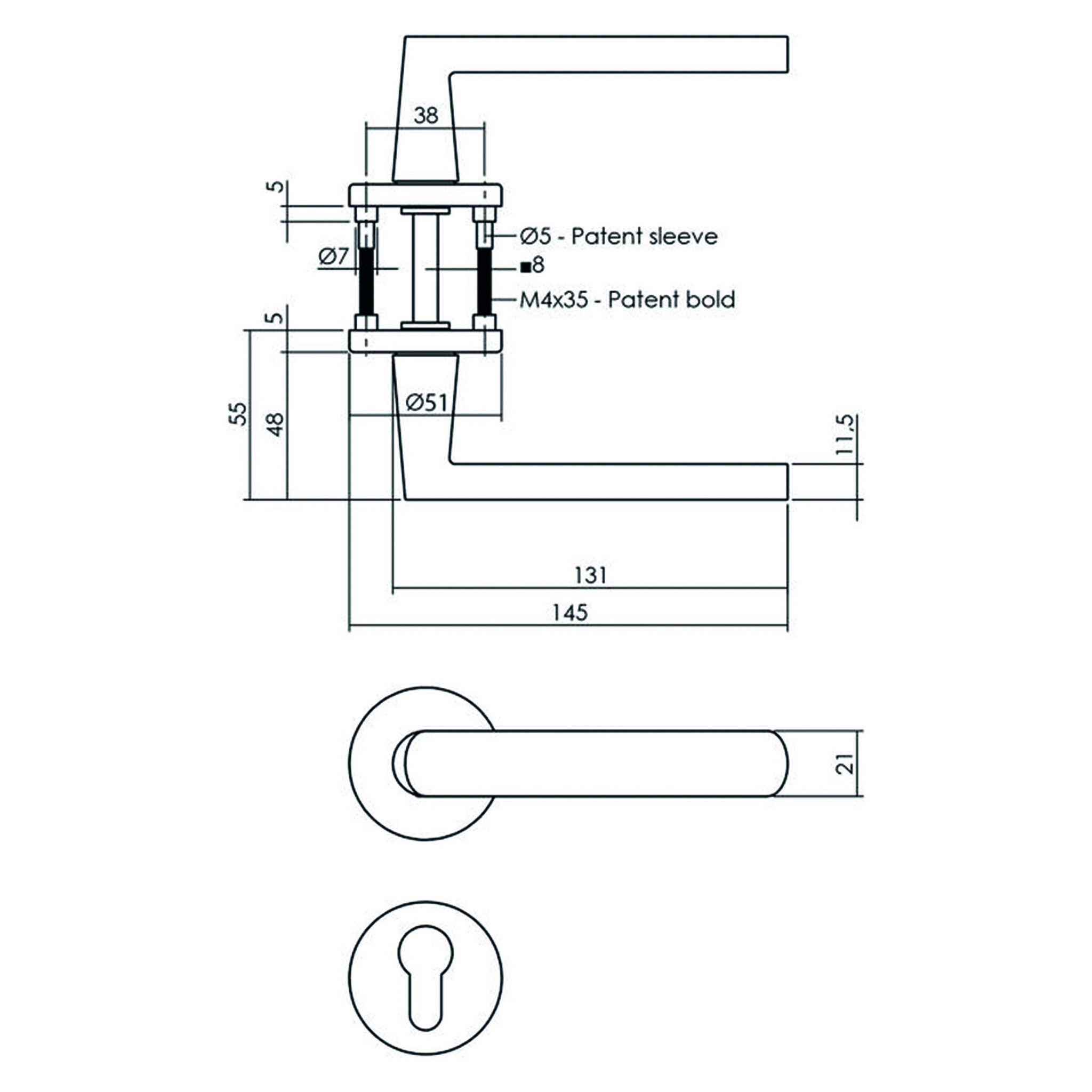 Dieser Türgriff besticht durch sein elegantes, abgerundetes Design. Die federbelastete Rosette hat einen Durchmesser von 51 mm, ragt 5 mm nach vorn und verfügt über einen Kunststoffsockel mit Nocken, die den Griff sicher fixieren.