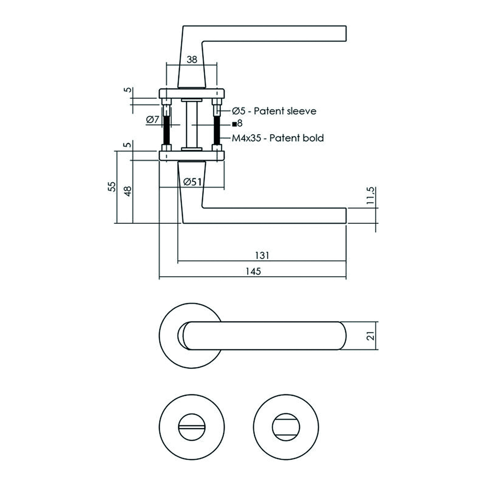 Diese Türgriffe sind in vier Ausführungen erhältlich: ohne Rosette, mit Rosette, mit Zylinderrosette und mit WC-Armaturen. Treffen Sie Ihre Auswahl im Scrollmenü oben rechts .