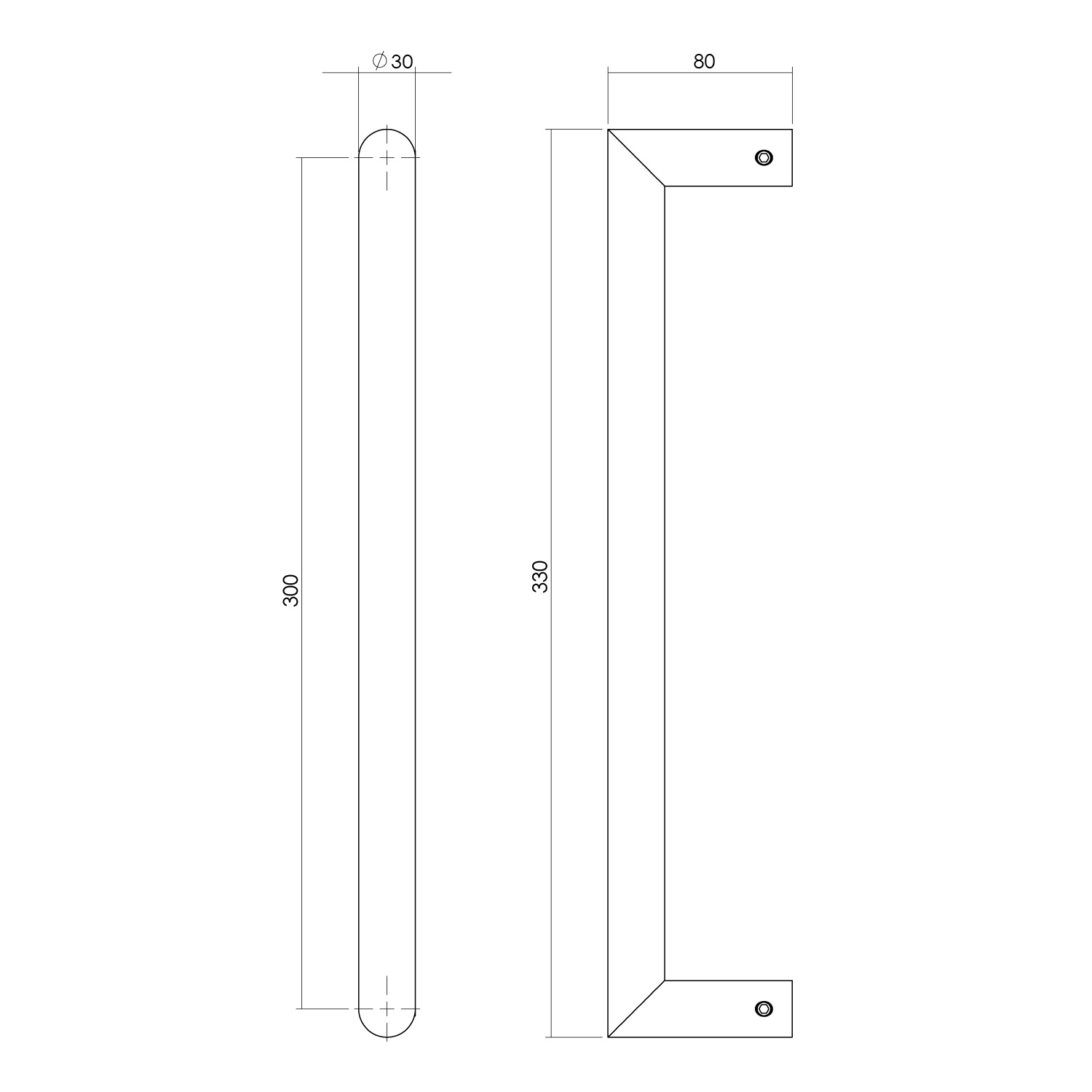 Türgriffe aus Edelstahl können sowohl an Einzel- als auch an Doppeltüren verwendet werden und werden zunehmend auch an Haustüren verwendet. Dieser Türgriff hat eine Gesamthöhe von 330 mm, einen Durchmesser von 30 mm und kommt nach der Montage 80 mm nach vorne. Der Abstand zwischen den beiden Befestigungspunkten beträgt 300 mm. Durch den dicken Griff haben Sie immer einen festen Griff.