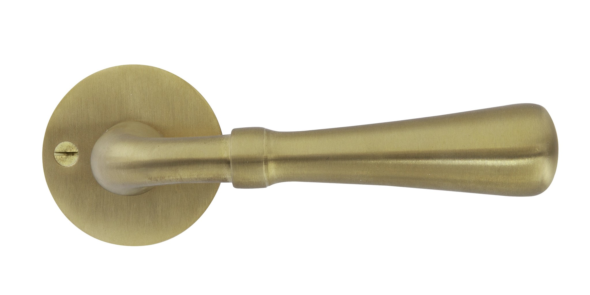 Diese Türgriffe gehören zur Country-Serie, deren Modelle auf der bekannten CDF-Kollektion (Créations du Fer) von Dauby basieren, dann aber aus gebürstetem, nicht lackiertem Messing.