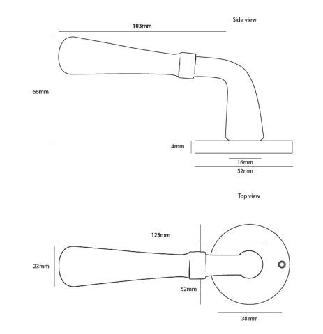 Diese wunderschönen altmodischen Türgriffe aus der CDL (Créations de Laiton) Kollektion von Dauby stehen auf einer runden Rosette mit einem Ø von 52 mm und einer Dicke von nur 4 mm. Die Schraublöcher sind bereits in der Rosette vorgesehen und haben einen Achsabstand von 38 mm.