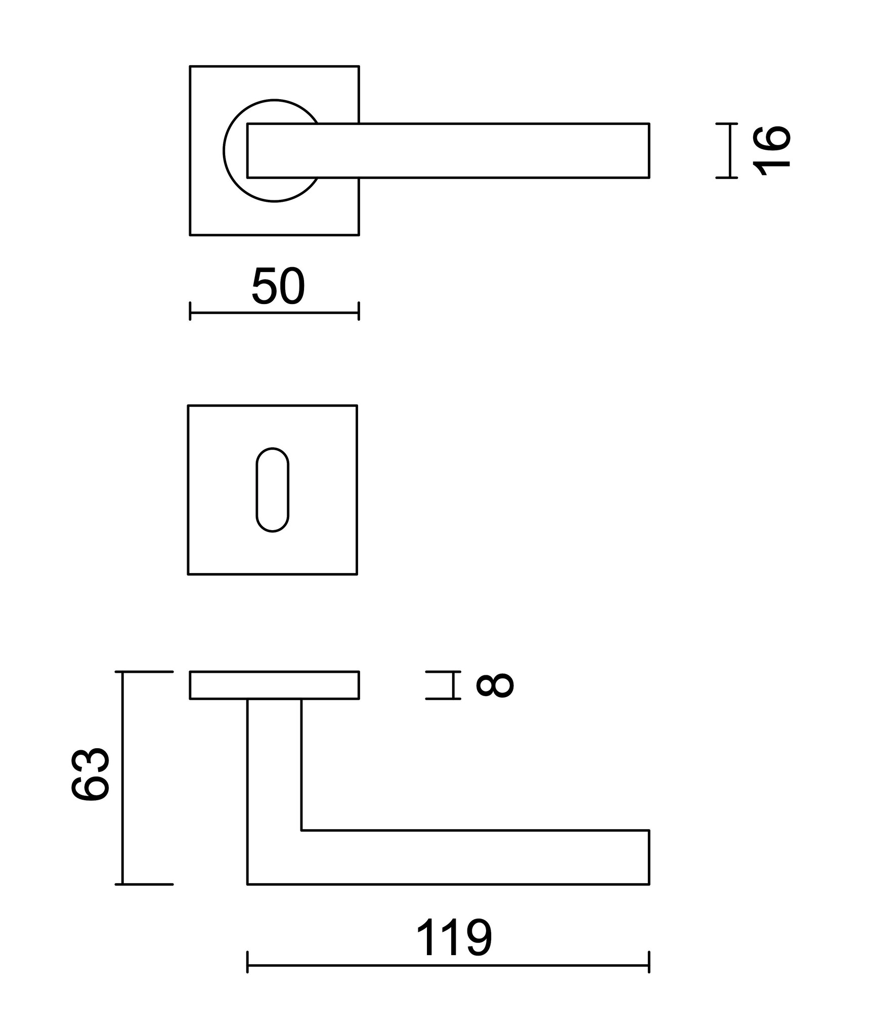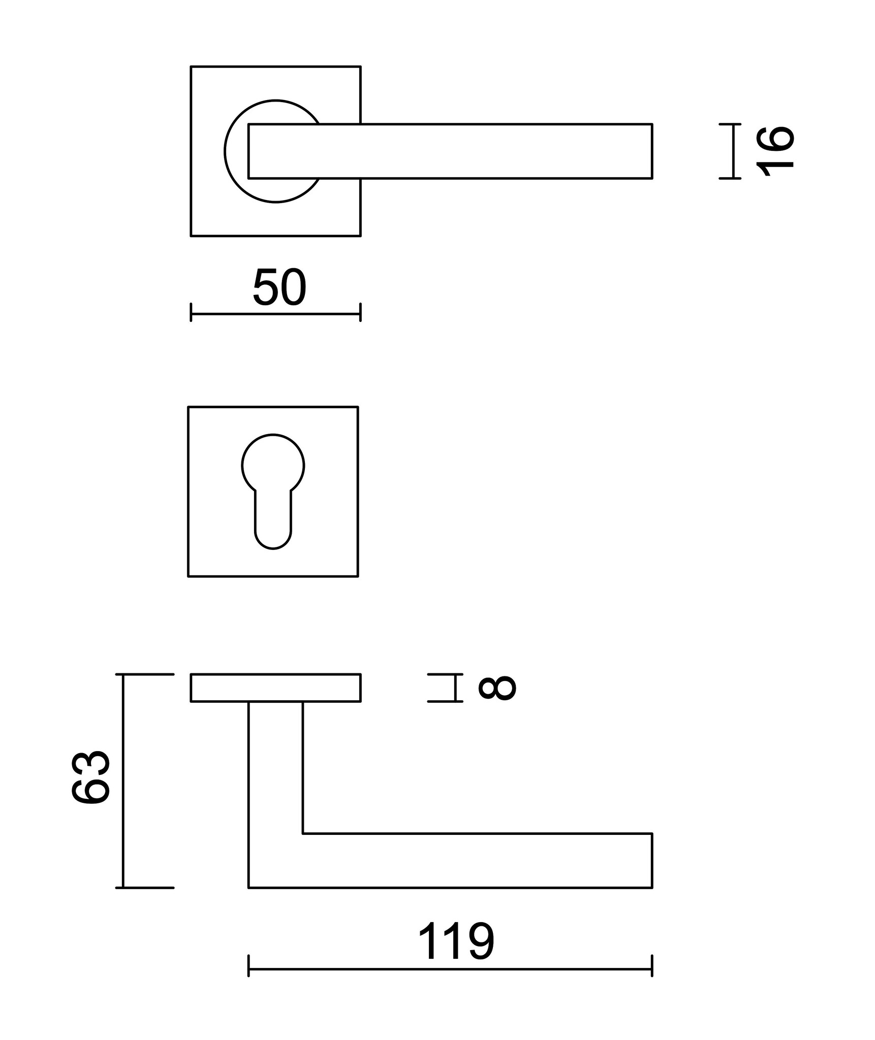 Diese Türgriffe sind in vier Ausführungen erhältlich: ohne Rosette, mit Rosette, mit Zylinderrosette und mit WC-Armaturen. Treffen Sie Ihre Auswahl im Scrollmenü oben rechts .