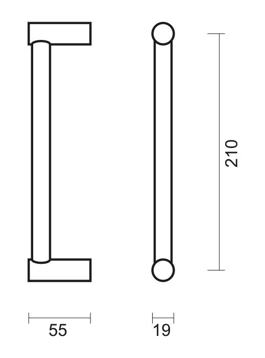 Moderne Edelstahl-Türgriffe in U-Form zur Montage an Glastüren. Diese Türgriffe aus Edelstahl haben einen Durchmesser von 19 mm und eine Achsgröße von 210 mm. Die Türgriffe ragen auf jeder Seite 55 mm nach vorne.