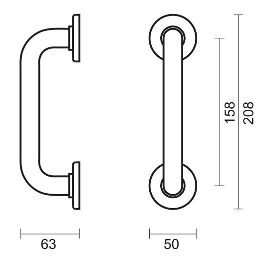 Der U-förmige Griff mit abgerundeten Ecken hat eine Gesamtlänge von 254 mm. Im montierten Zustand kommt es 63 mm heraus.