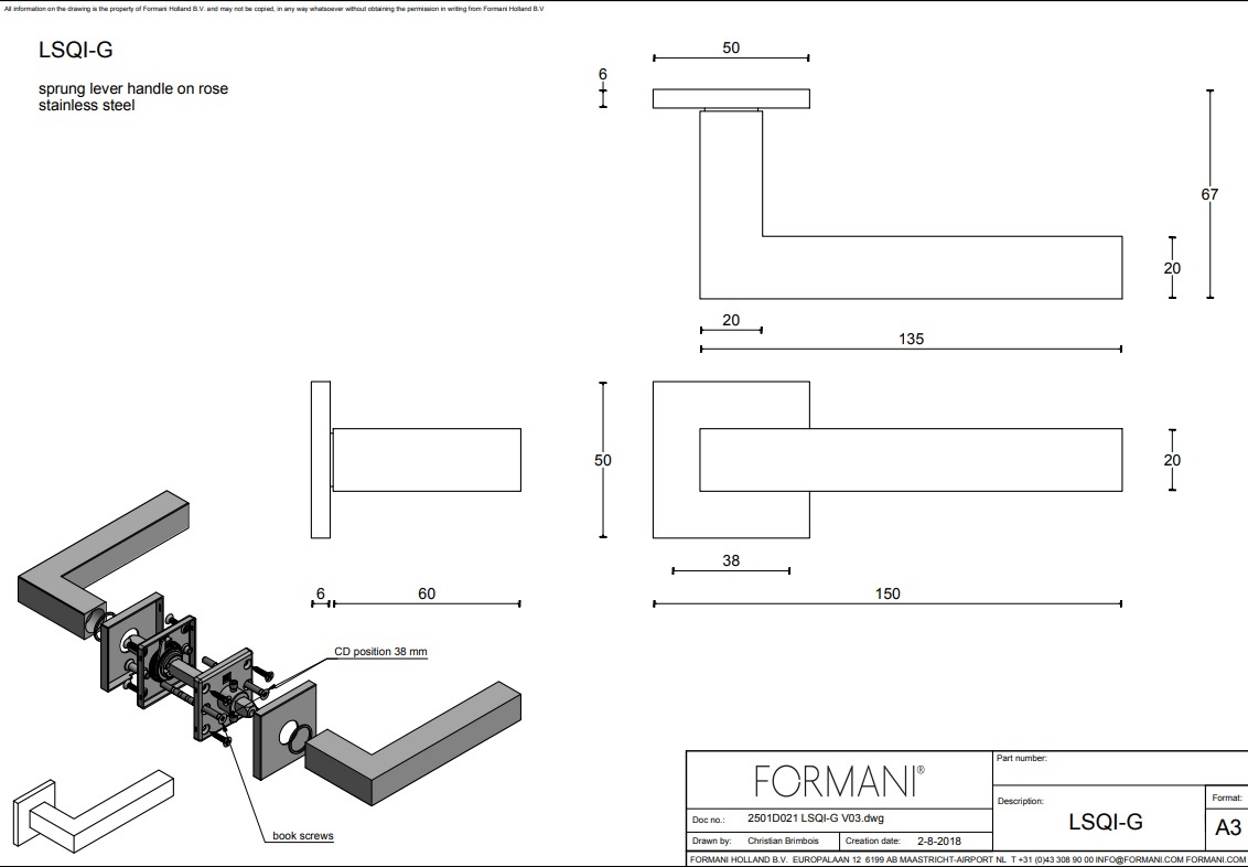 Diese Türgriffe aus mattem Edelstahl LSQI-G haben einen quadratischen Griff mit einem rechten Winkel. Dies verleiht diesem von Jan Des Bouvrie entworfenen Türgriff einen besonders schönen, modernen Look. Der Griff ist 20 x 20 mm groß und 135 mm lang.