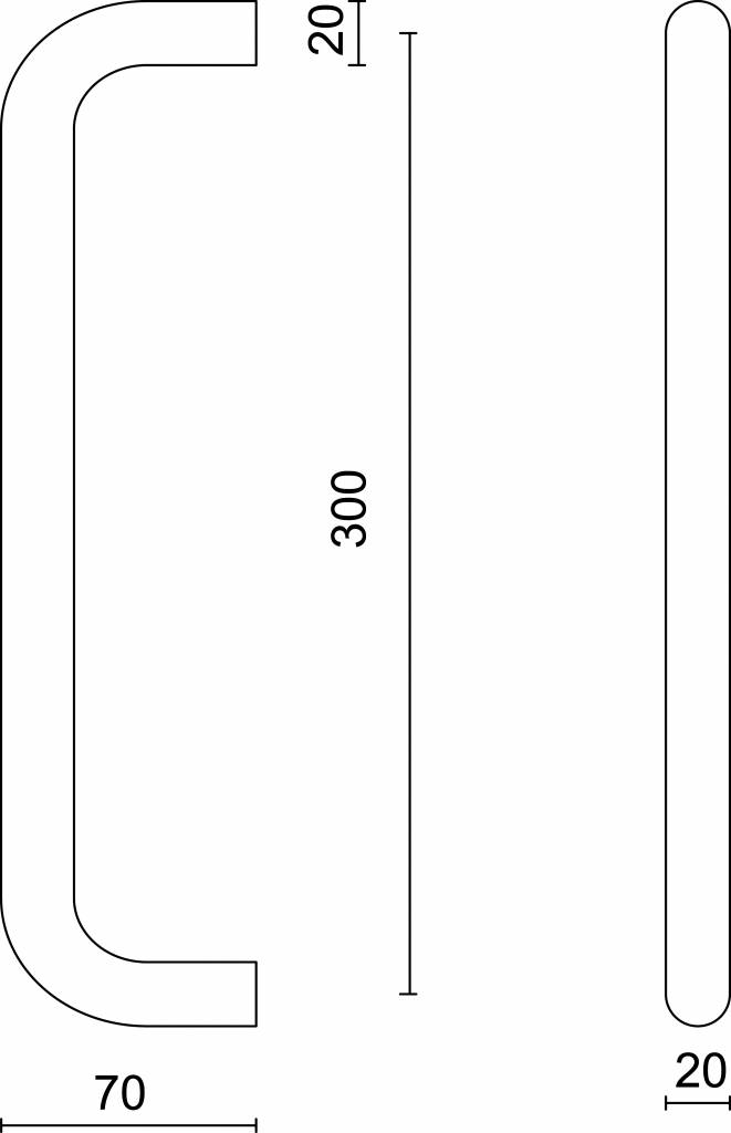 Moderne Türgriffe aus Edelstahl in U-Form mit schönen abgerundeten Ecken. Die Türgriffe aus Edelstahl haben einen Durchmesser von 20 mm und eine Achsgröße von 300 mm.