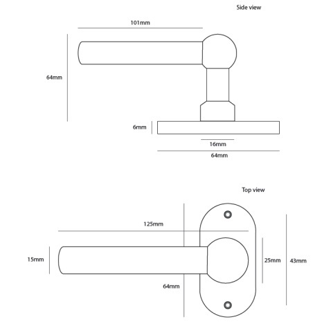 Diese L-förmigen Türgriffe mit Kugelknoten aus der CDL-Kollektion (Créations de Laiton) von Dauby stehen auf einer ovalen Rosette von 68 mm Höhe und 6 mm Dicke. Die Schraublöcher sind bereits in der Rosette vorgesehen und befinden sich im Mittenabstand von 43 mm.