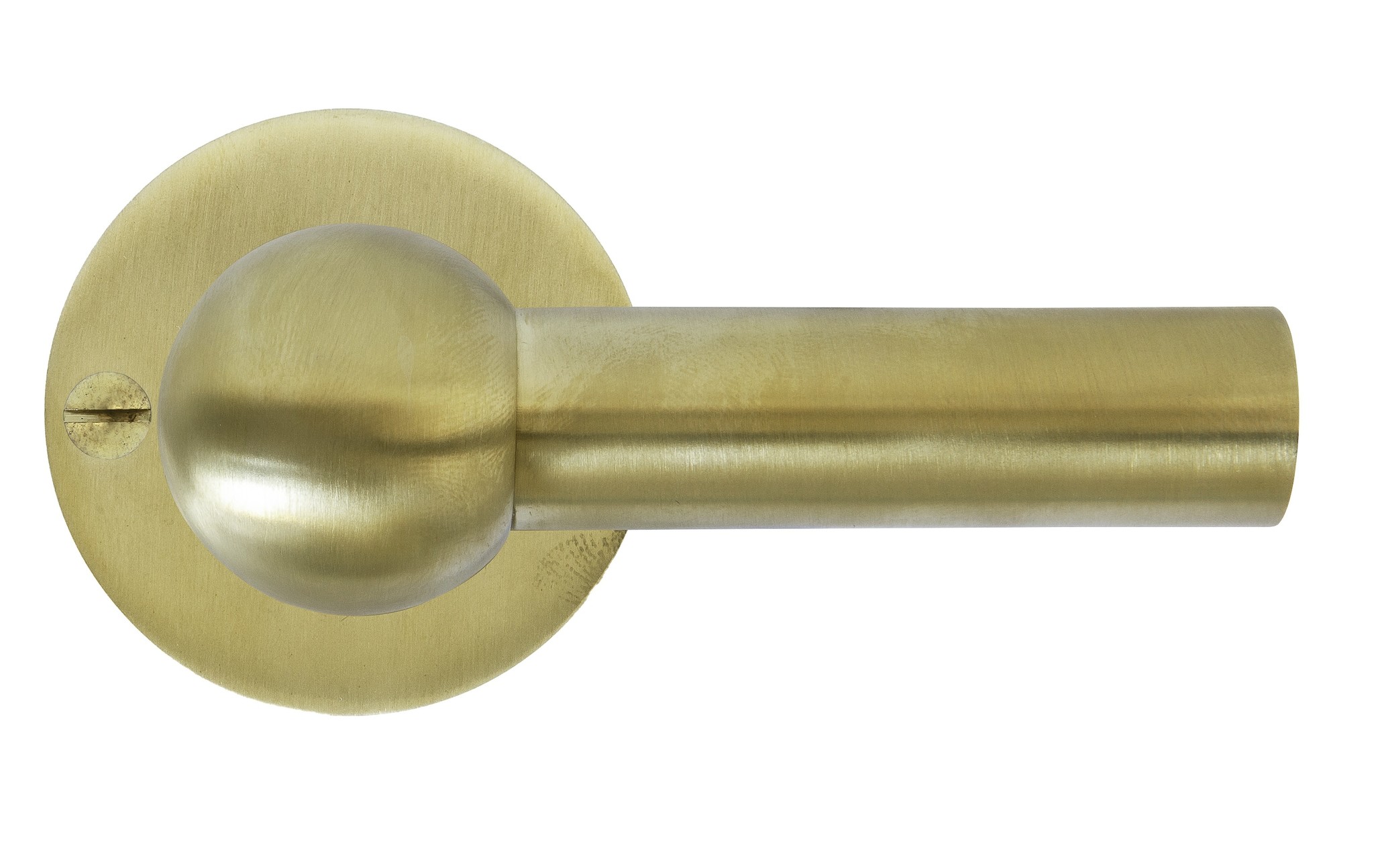 Diese Türgriffe gehören zur Country-Serie, deren Modelle sich an der bekannten CDF-Kollektion (Créations du Fer) von Dauby orientieren, dann aber aus gebürstetem Messing.