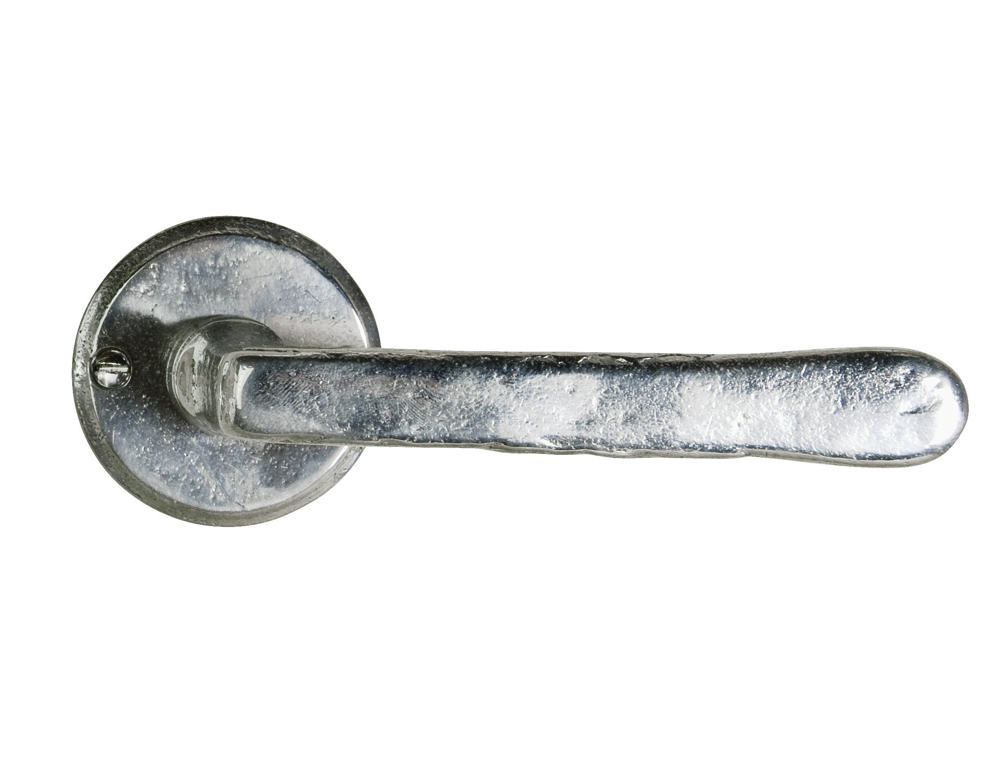 Beschreibung Paar Türgriffe PHL 'L+L' in Weißbronze auf runden Rosetten mit einem Durchmesser von 50mm ohne Schlüsselplatten
