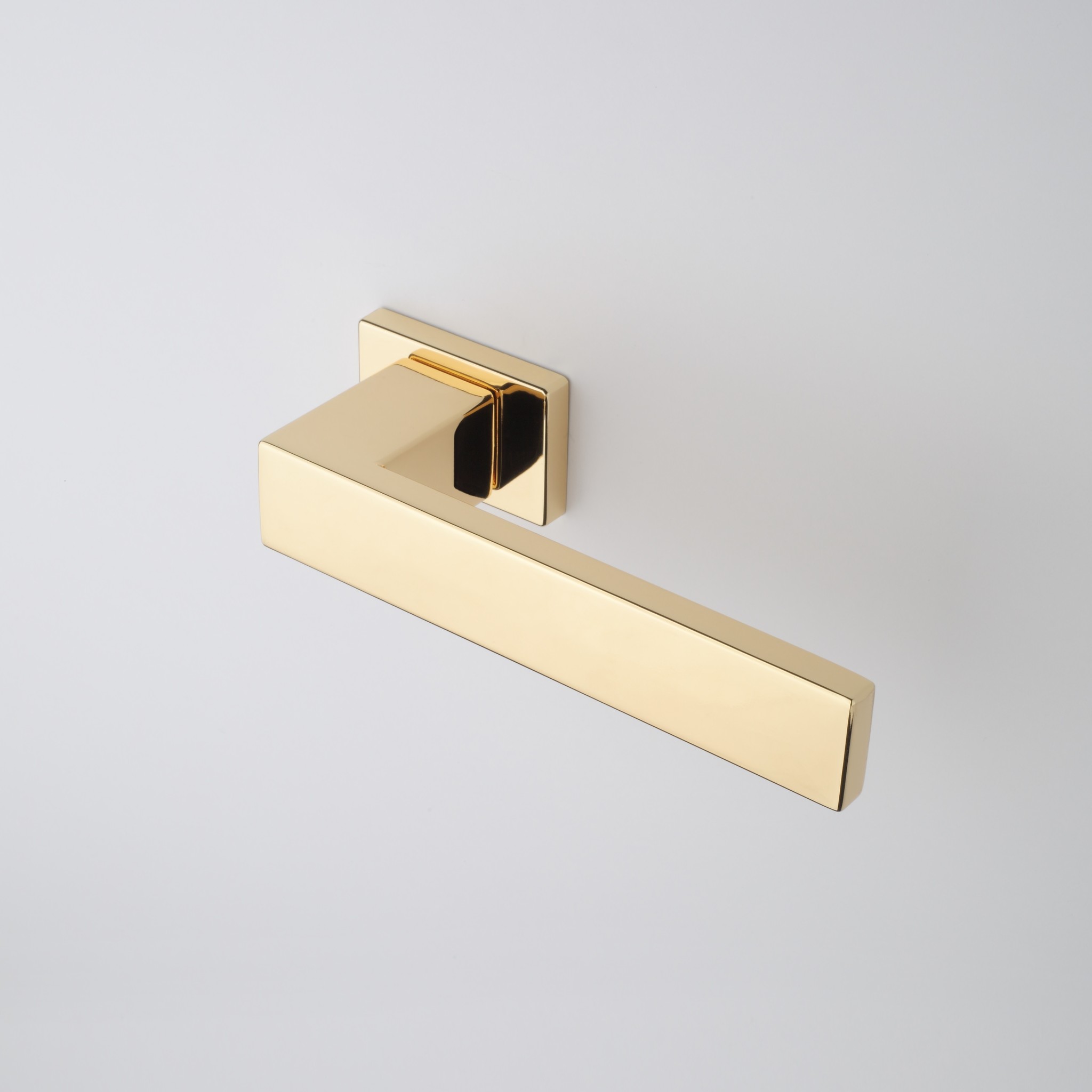 Lassen Sie sich von diesem wunderschönen goldpolierten Designer-Türgriff verführen, der sich durch seine rechteckigen Rosetten auszeichnet. Der Pina-Türgriff ist die perfekte Wahl, wenn Sie etwas Besonderes suchen. Dieser Stil passt besonders gut in moderne und minimalistische Wohnräume.