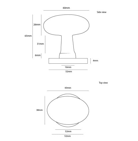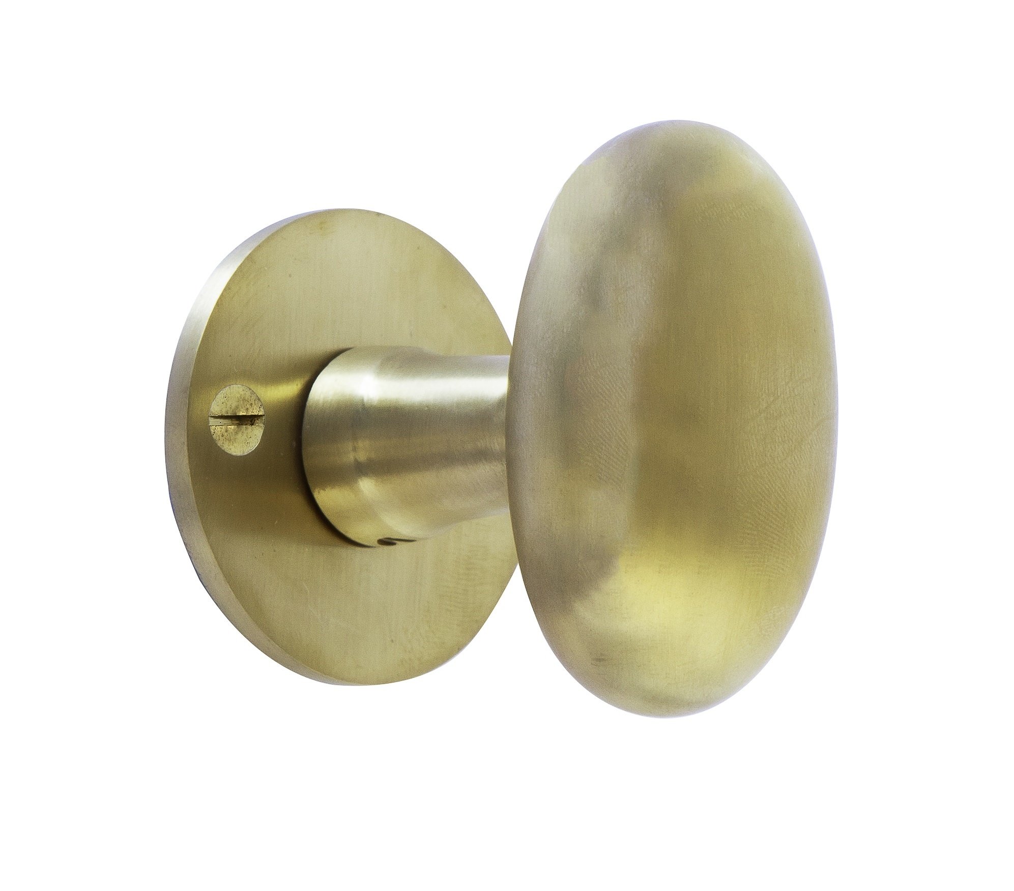 Diese runden Drehtürknäufe in Pilzform aus der Kollektion CDL (Créations de Laiton) von Dauby stehen auf einer runden Rosette mit einem Ø von 52 mm und einer Dicke von nur 4 mm. Die Schraubenlöcher sind bereits in der Rosette vorgesehen und befinden sich im Mittenabstand von 38 mm.
