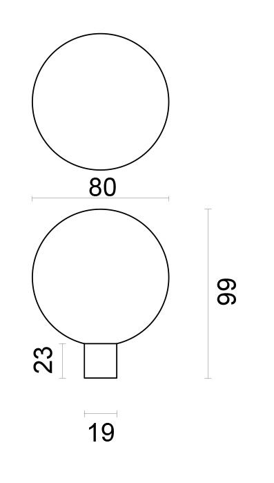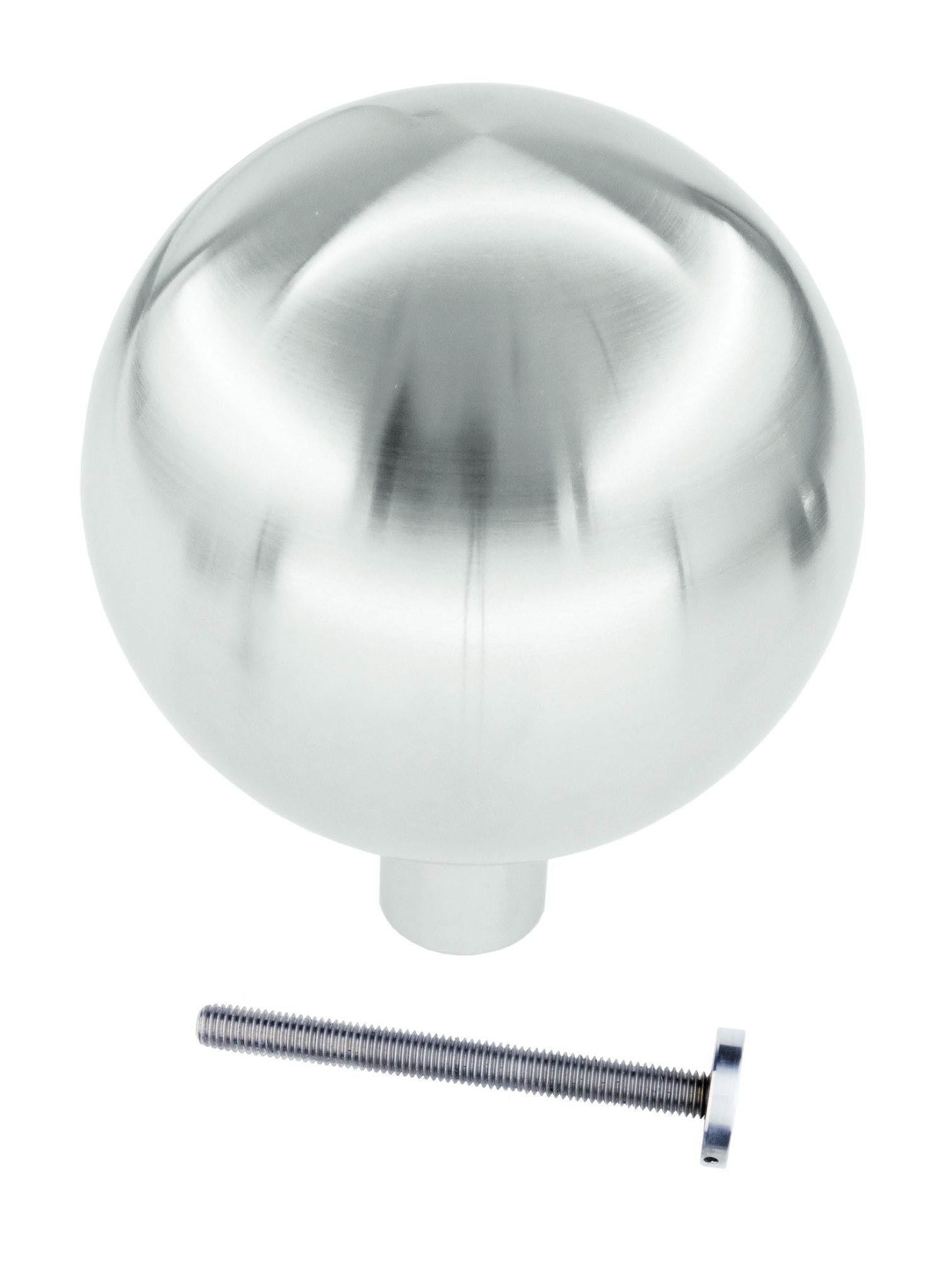Dieses feste Oberteil "B80" besteht aus massivem Edelstahl und ist kugelförmig. Die Kugel hat einen Durchmesser von 80 mm und steht auf einer zylindrischen Basis von 19 x 23 mm. Die Gesamthöhe beträgt 99mm.
