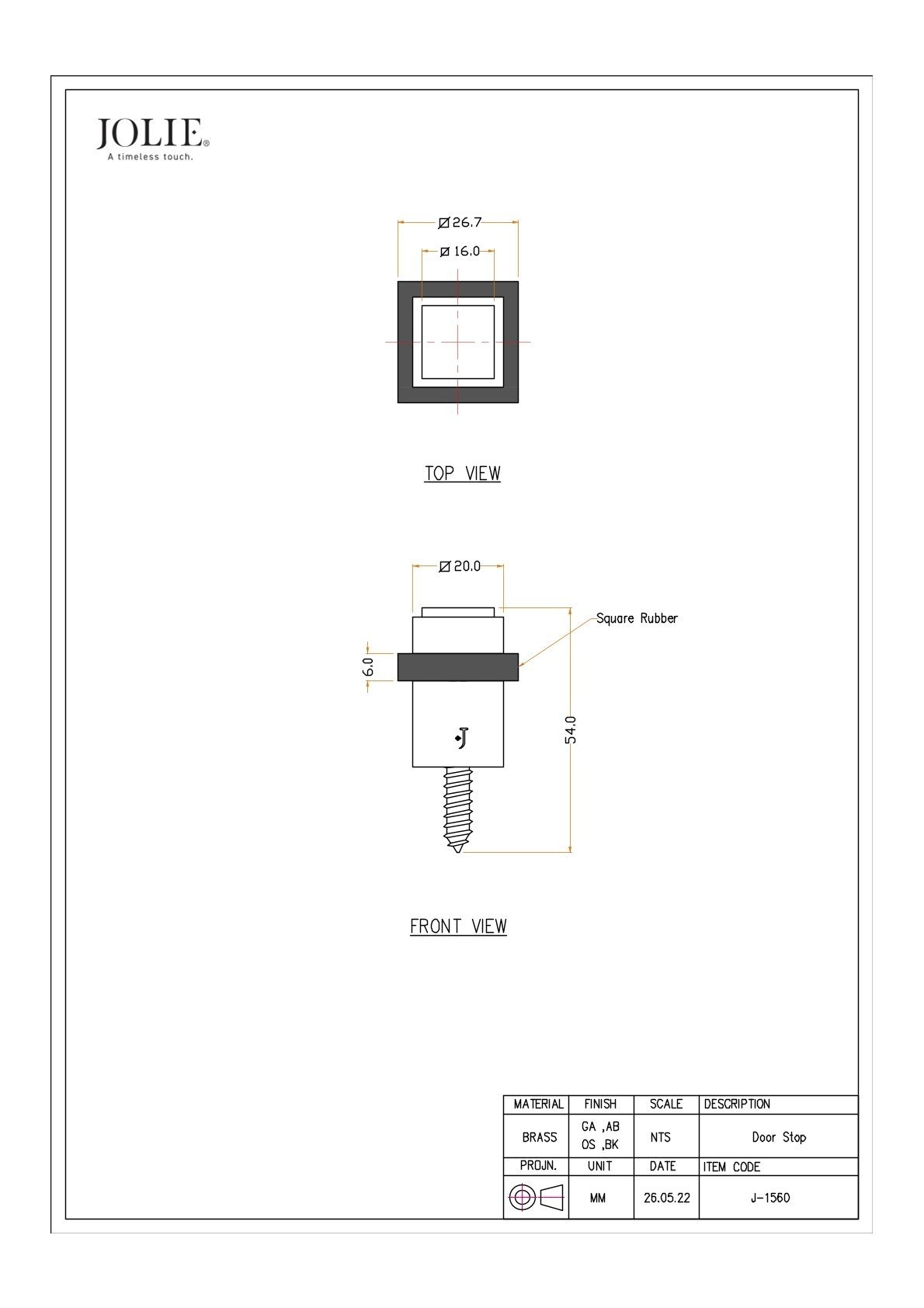 Wie alle JOLIE-Produkte wird auch dieser Türstopper aus massivem Messing in Handarbeit im traditionellen Sandgussverfahren hergestellt, wodurch jedes Stück eine einzigartige Textur und erstklassige Qualität erhält.