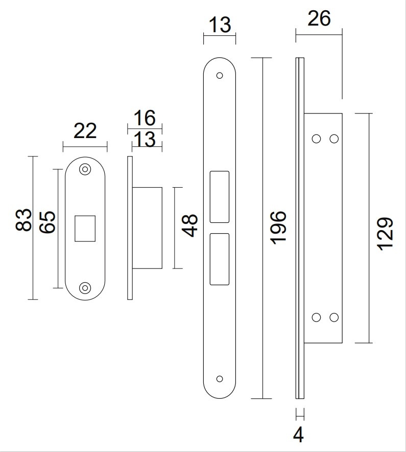 Durch die Verwendung dieser Magnetschlösser spielt die Schaftgröße oder das Dornmaß der Türdrücker keine Rolle, da dieses Schloss kein Kurbelloch hat.