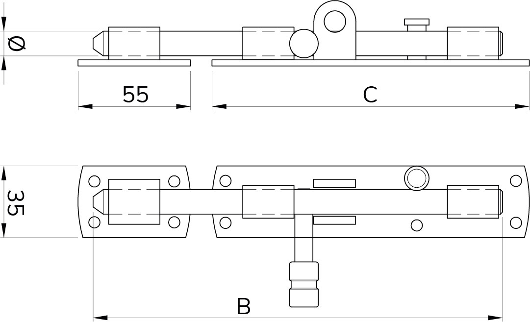 Diese längere Variante von 420 mm lässt sich am besten mit einem Vorhängeschloss kombinieren. (Nicht enthalten)