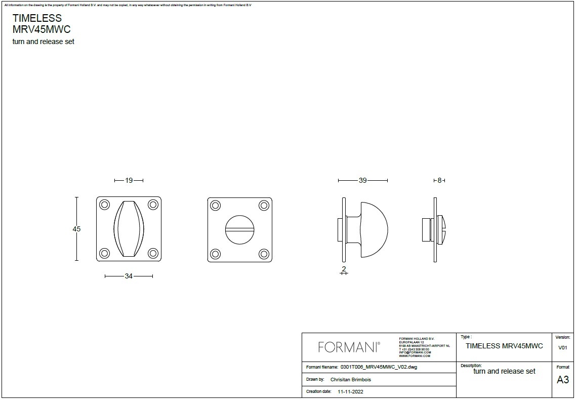 WC-Garnitur "TIMELESS" MRV45MWC matt Nickel 45x45 mm und 2 mm dick designed by Formani