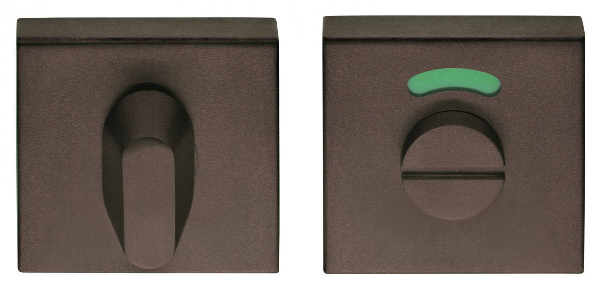 Quadratischer Bronze-Toilettenbeschlag Basics BSQWC53 BR, geeignet für Schlösser mit einer Öffnung von 5/6/7 und 8 mm – grün/rote Anzeige