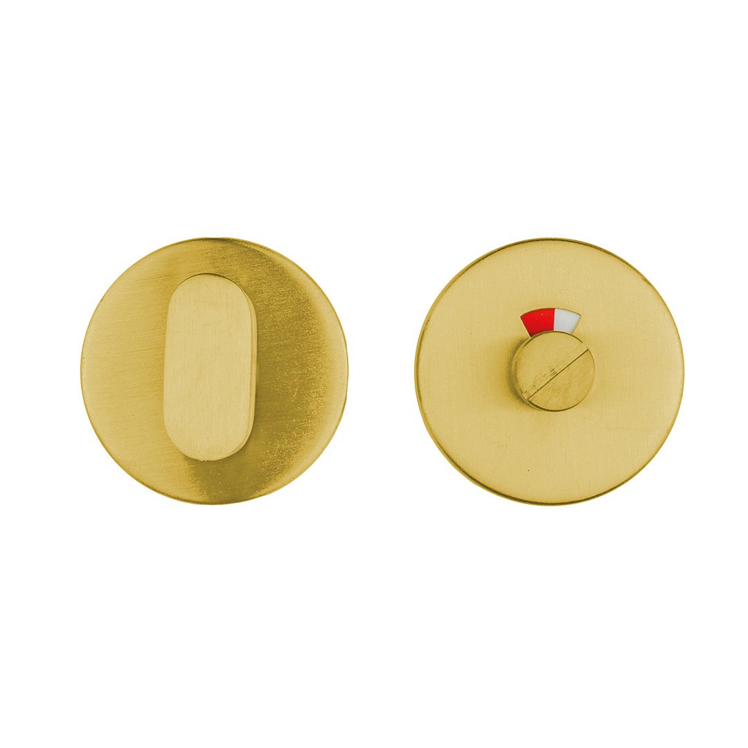 Die runde WC-Armatur HDD in mattem Kupfer ist eine stilvolle und funktionale Lösung zum Verschließen von WC- und Badezimmertüren. Dank ihres eleganten, runden Designs fügt sie sich perfekt in moderne wie auch in gemütliche Interieurs ein.
