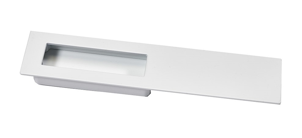 Diese rechteckige Schiebetürschale hat eine mattweiße Beschichtung.