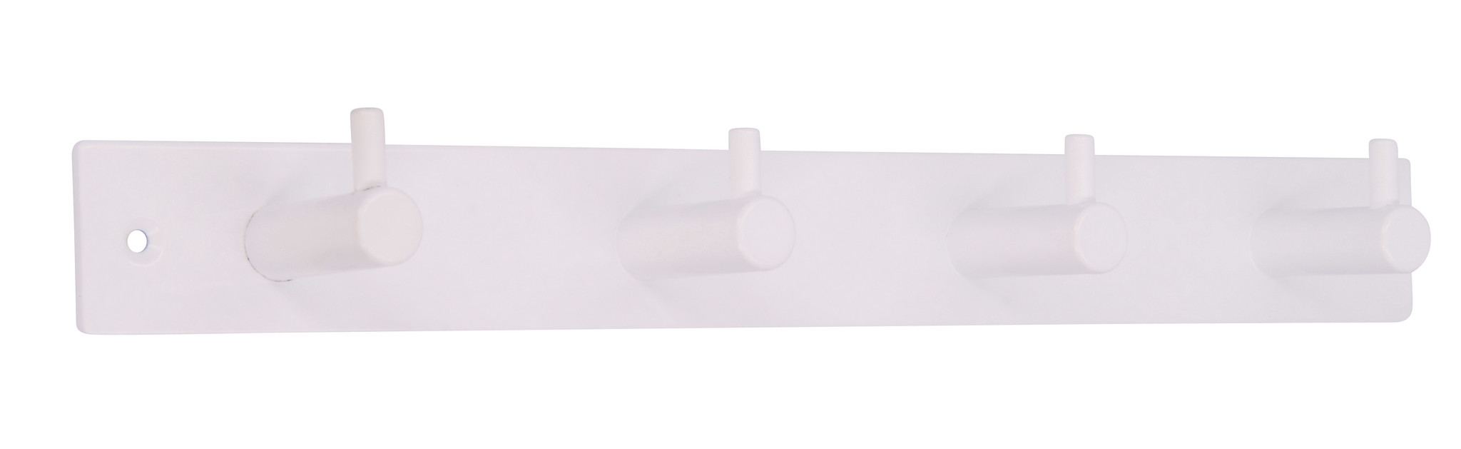 Moderne Stahlgarderobe mit 4 Haken in weiß mit einem Achsabstand von 298 mm