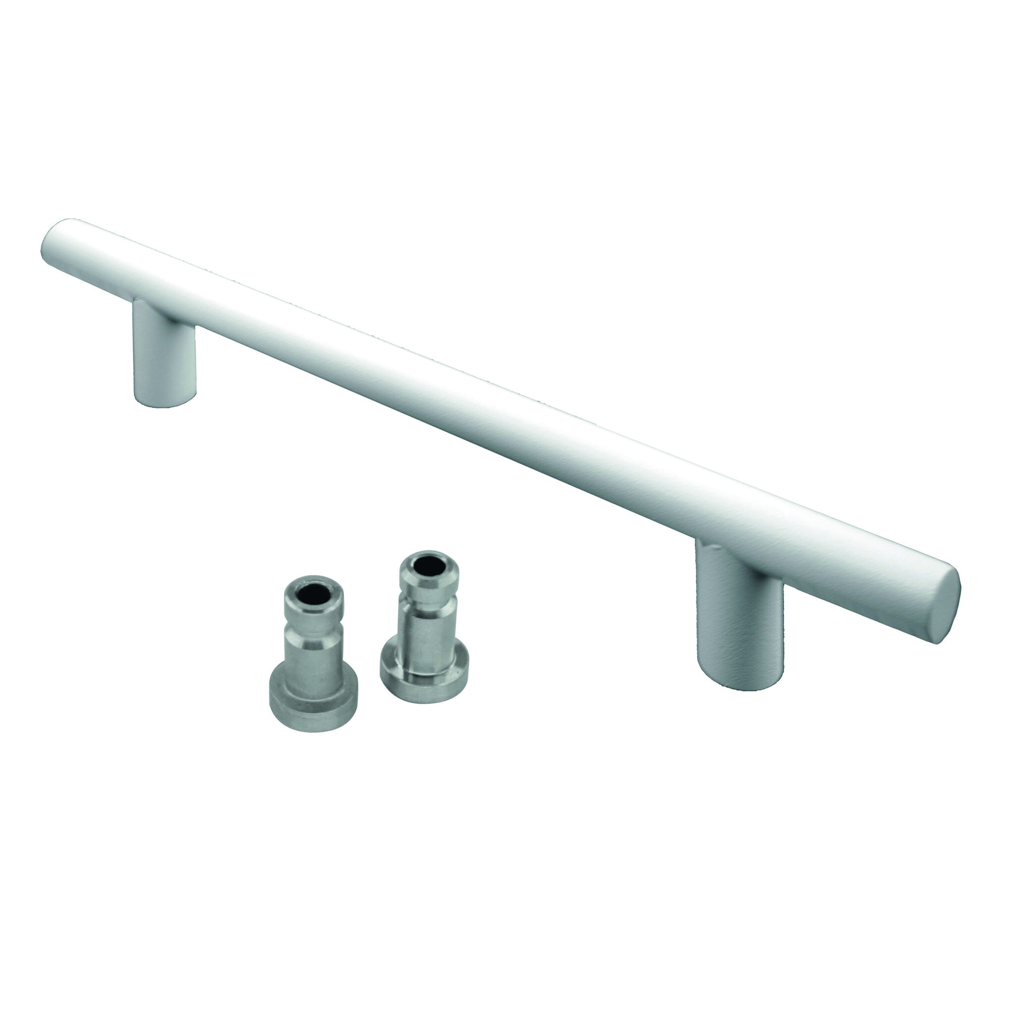 Dieser Türgriff aus Edelstahl ist mit einer mattweißen Beschichtung mit Struktur versehen.