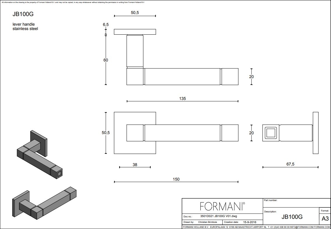 Diese weißen Türgriffe JB100-G haben einen quadratischen Griff mit einem rechten Winkel. Die Einkerbungen an der Vorder- und Rückseite des Griffs verleihen diesem von Jan Des Bouvrie entworfenen Türgriff einen besonders schönen, modernen Look. Der Griff ist 20 x 20 mm groß und 135 mm lang.