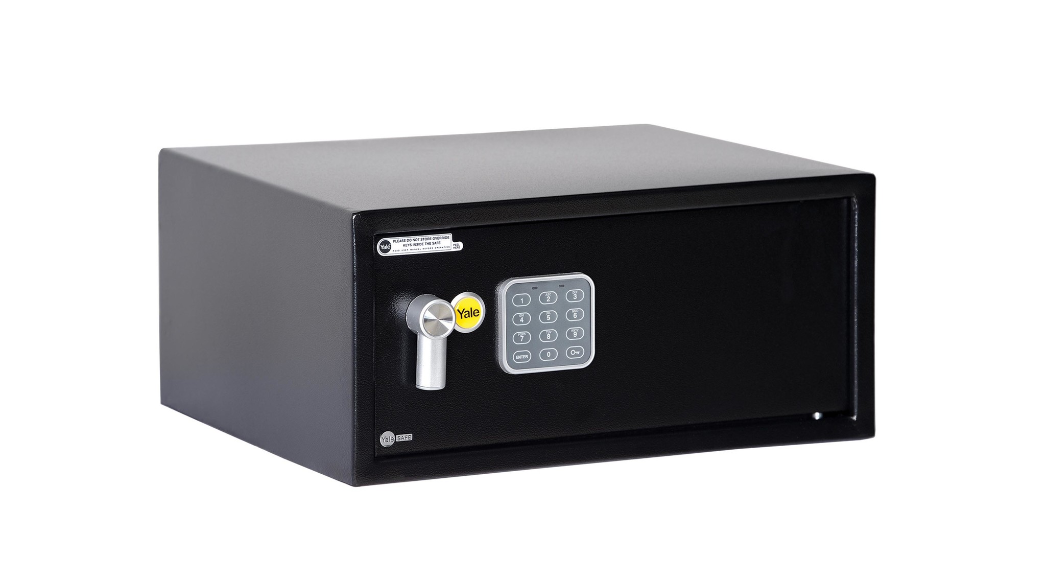 Der Yale 'Standard Security' Laptopsafe eignet sich für die sichere Aufbewahrung Ihres Laptops. Dieser elektronische Safe gehört zu Yales Standard Security-Reihe und bietet einen Basisschutz gegen Aufbrechen. Das Stahlgehäuse und die 16mm Stahlschrauben verschließen den Tresor gut, sodass niemand an Ihren Laptop gelangen kann.