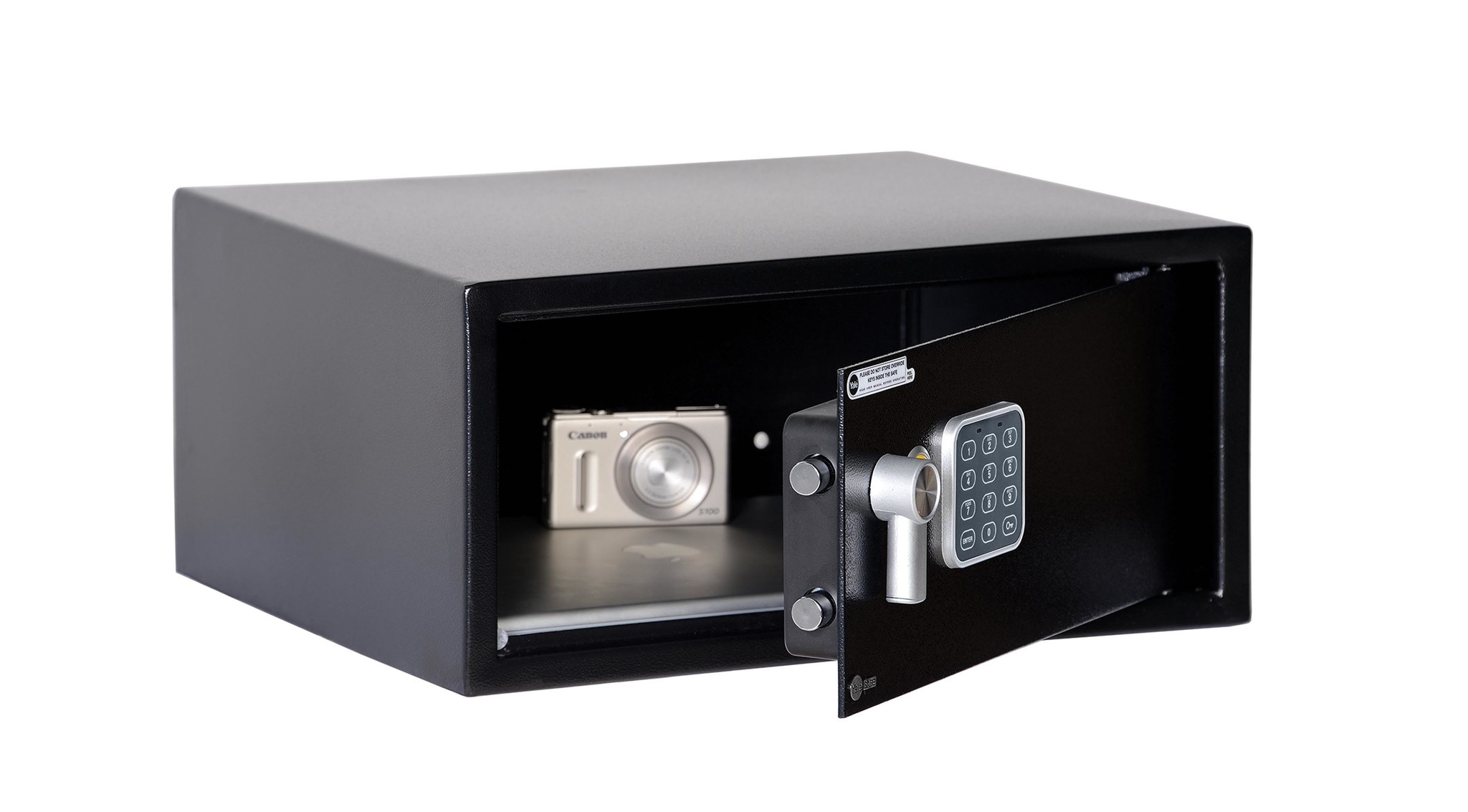 Der Tresor ist einfach zu bedienen und mit einem PIN-Code zu öffnen. Zudem lässt sich der Tresor im Notfall mit den beiden mitgelieferten Notschlüsseln jederzeit öffnen. Aufgrund seiner kompakten Größe lässt sich der Tresor unauffällig in der Wohnung oder im Büro platzieren, zum Beispiel in einem Schrank oder unter einem Schreibtisch. Der Safe ist für einen Laptop mit einer Bildschirmdiagonale von bis zu 15,6 Zoll geeignet.