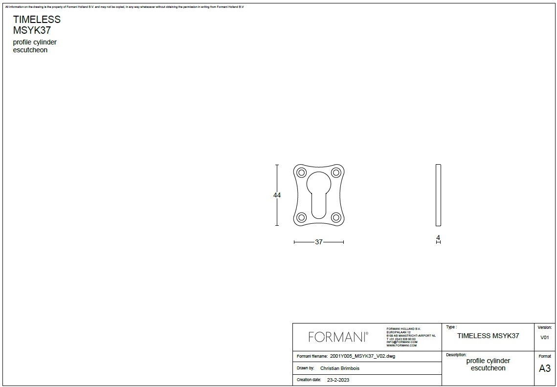 Formani Zylinderplatte TIMELESS - MSYK37 in poliertem Nickel auf einer kleeblattförmigen Rosette