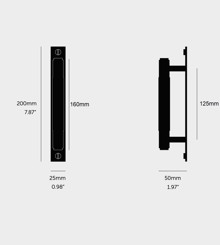 Diese Edelstahl-Möbelgriffe stehen auf einer massiven Edelstahl-Rückplatte und sind in 3 Längen erhältlich: 200 mm, 300 mm oder 400 mm.
