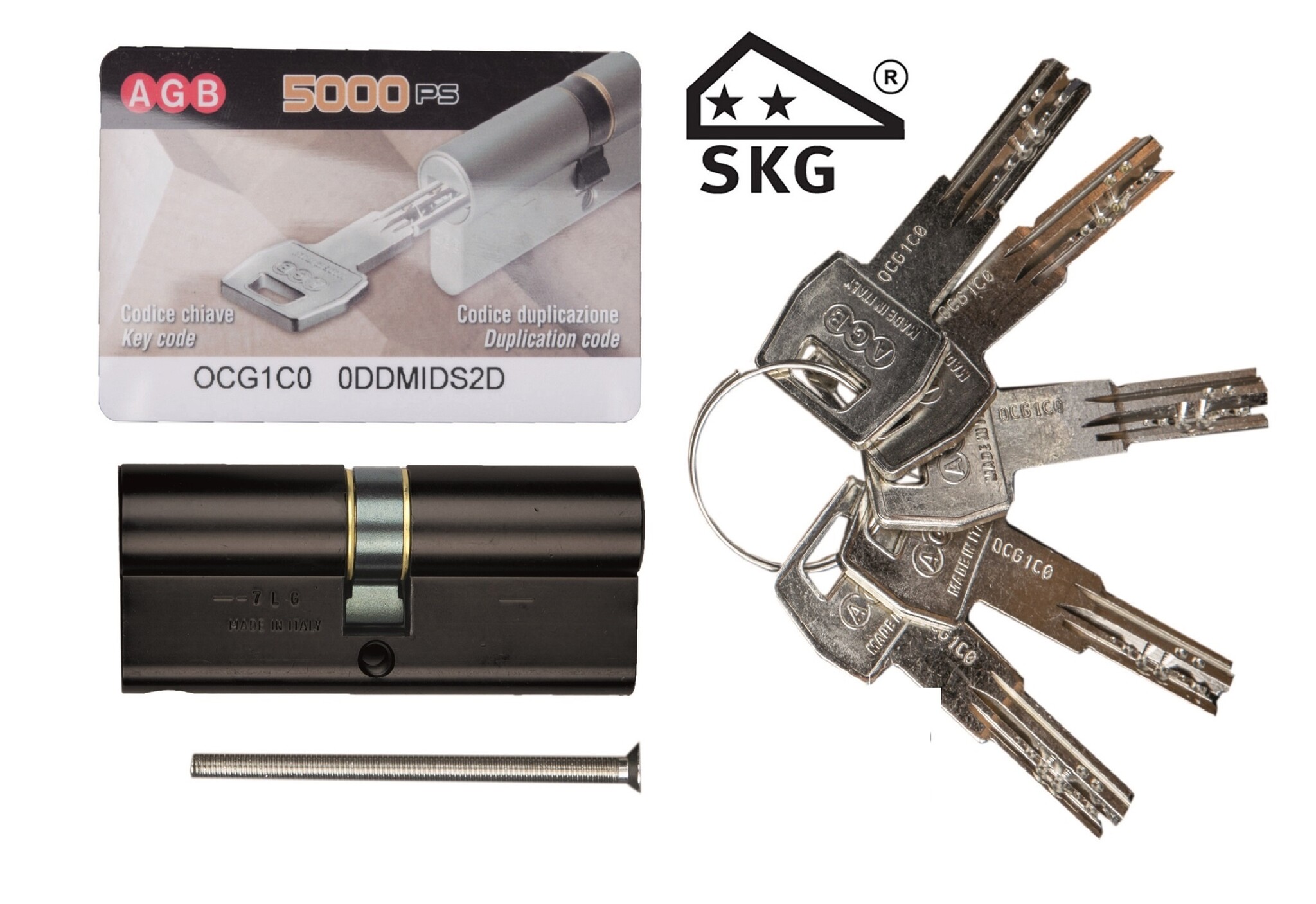 Bei diesem schwarzen Zylinder von AGB handelt es sich um einen Sicherheitszylinder vom Typ 5000 PS.