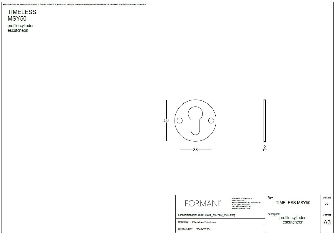 The cylinder plate belongs to the Formani "TIMELESS" series and is made of brass. The plate is finished with a matte black coating.