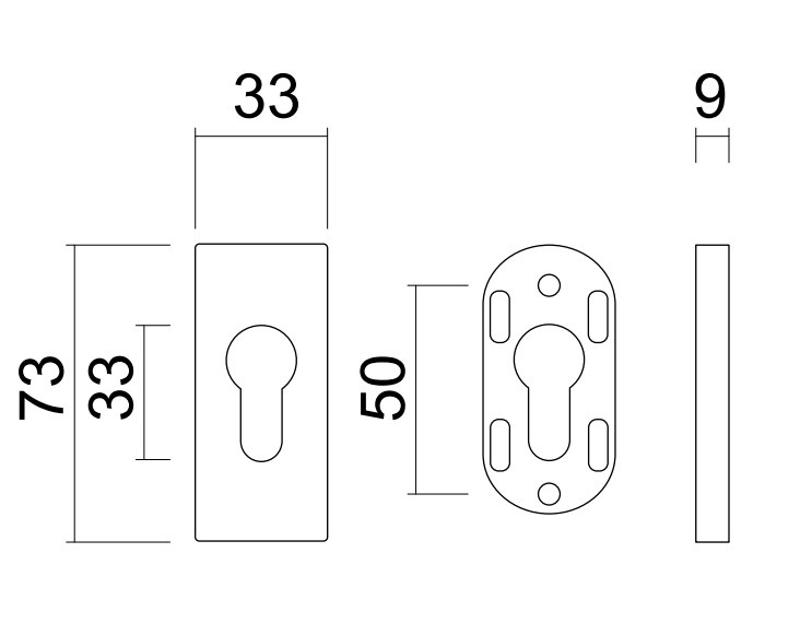 This straight safety cylinder plate has a thickness of 9 mm. The lower rosette is screwed to the door first, after which you slide the cover plate over it from top to bottom. After the cylinder is inserted, the cover plate can no longer be moved.