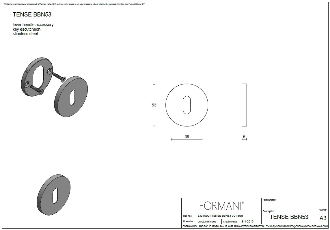 The key plate belongs to the Formani "TENSE" series and is made of stainless steel. The plate is finished with a brushed finish for a matte finish.