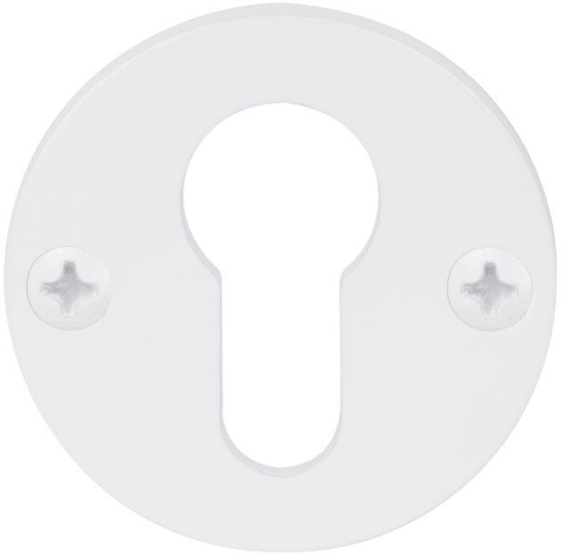 This white PBY50 cylinder plate is already provided with 2 screw holes and is supplied per piece including the mounting materials.